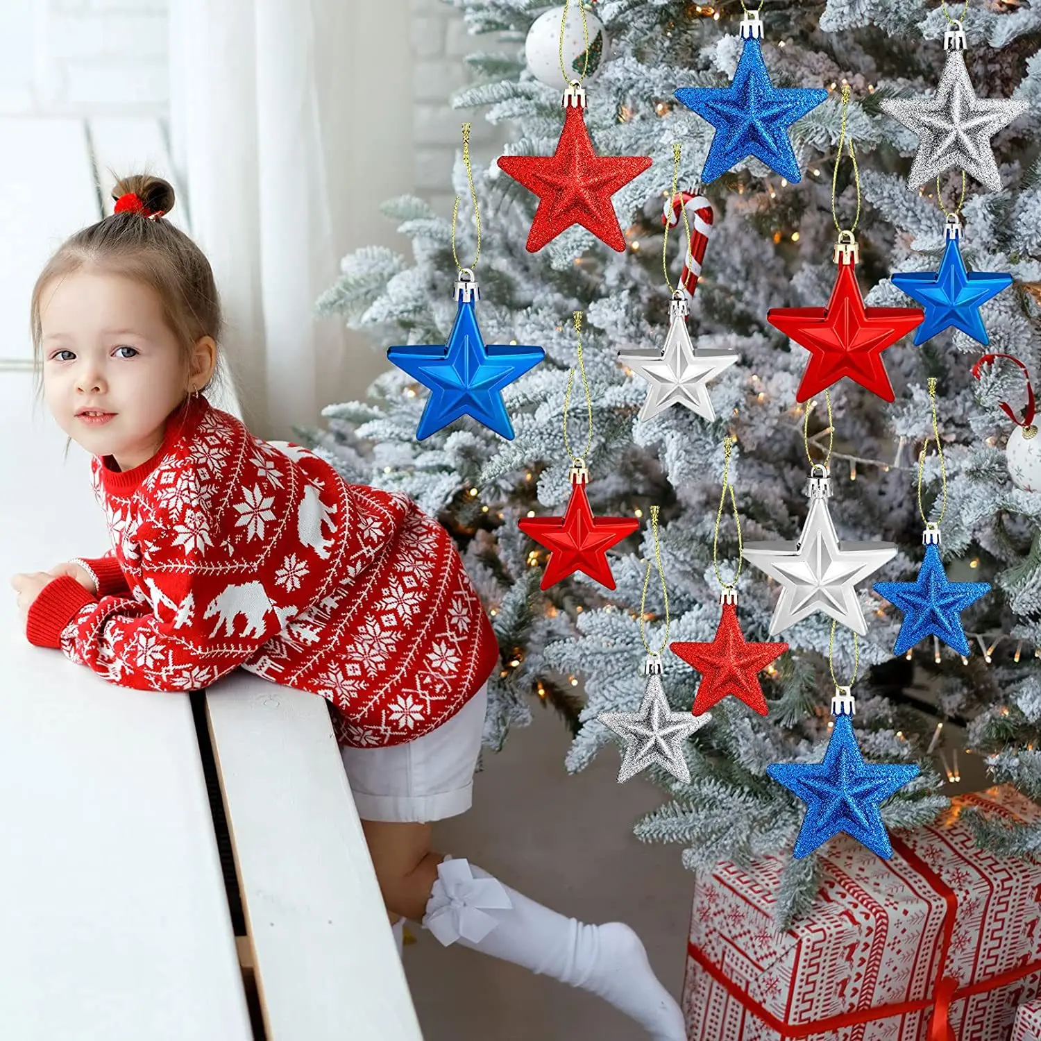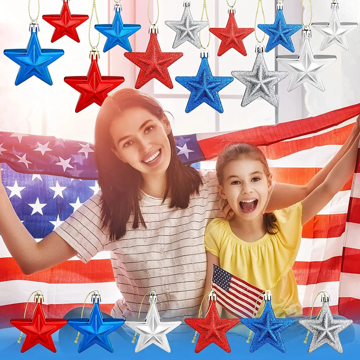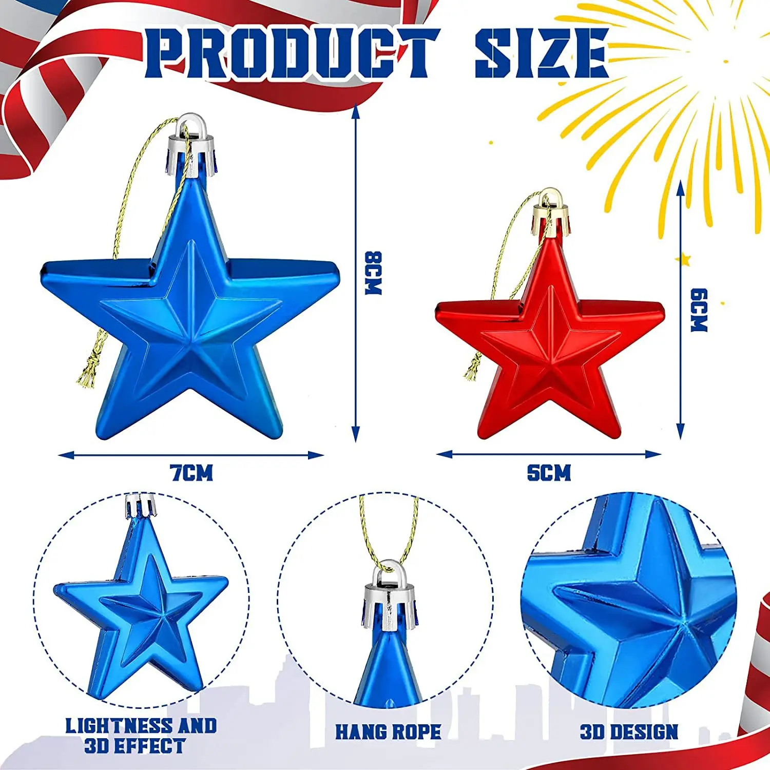 American Independence Day Patriotic Ball 7CM 3D Christmas Pentagram Labor Day Party Christmas Tree Decoration Small Pendant