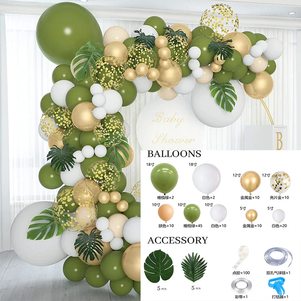 Olive Green Balloon Set Turtle Back Leaf Loose Tail Sunflower Leaf Camping Line Decoration