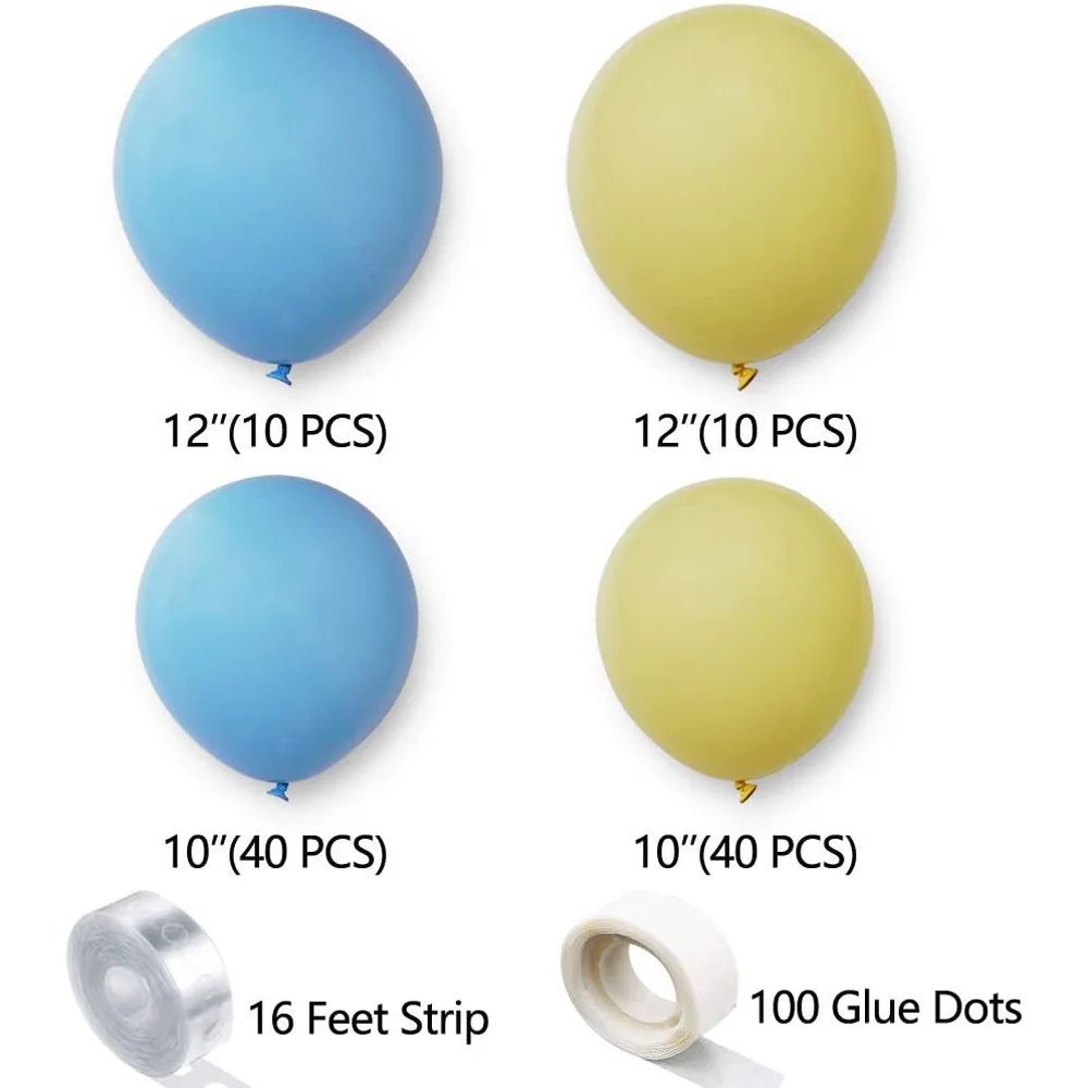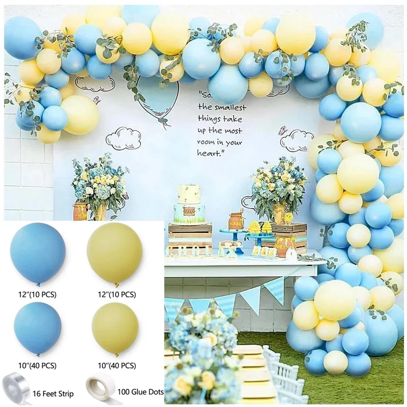 Macaron Blue Yellow Balloon Chain Set Birthday Party Blue Theme Background Decoration Arrangement Latex Balloons