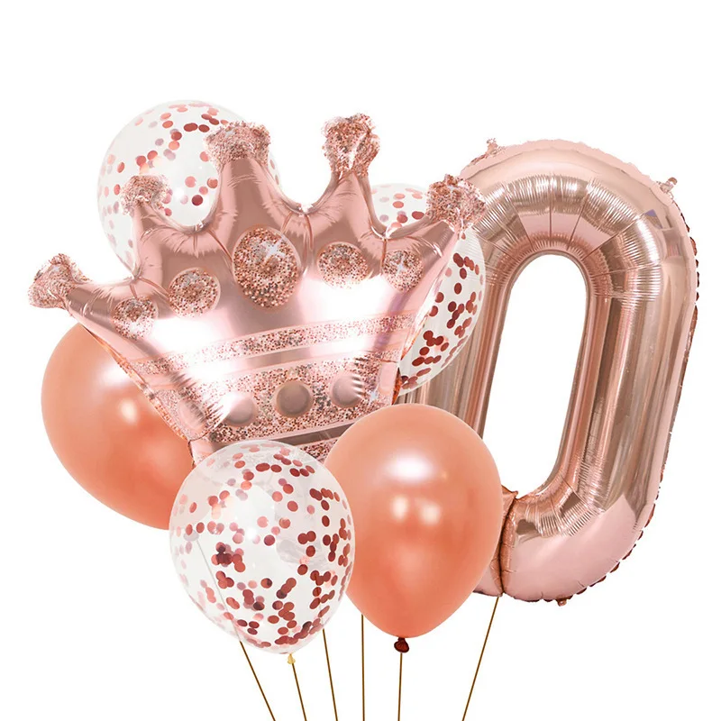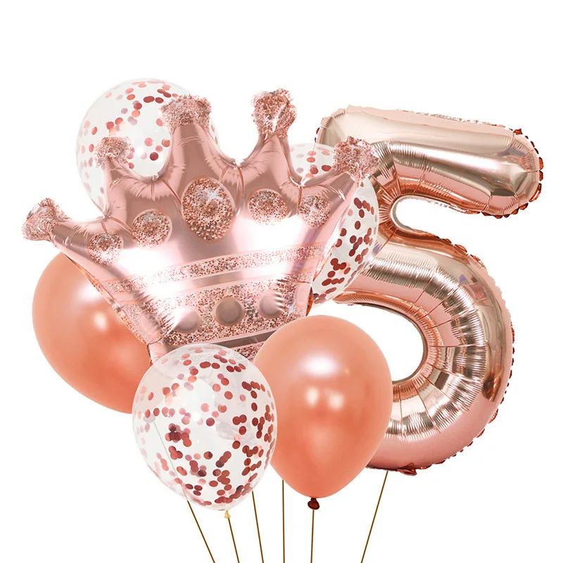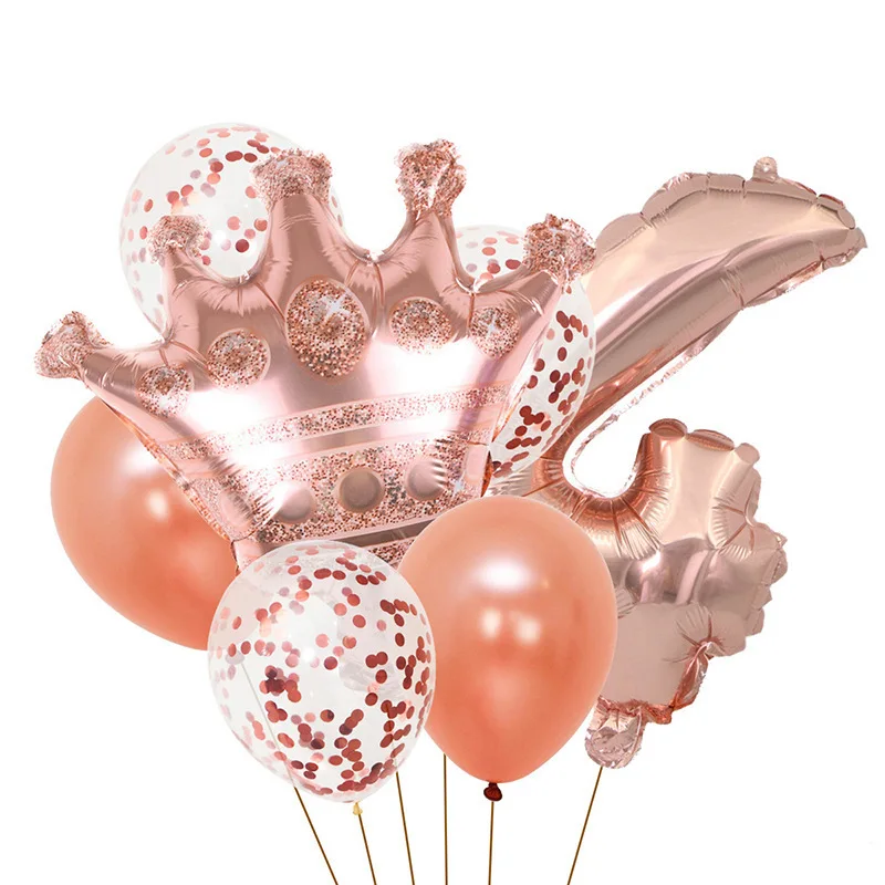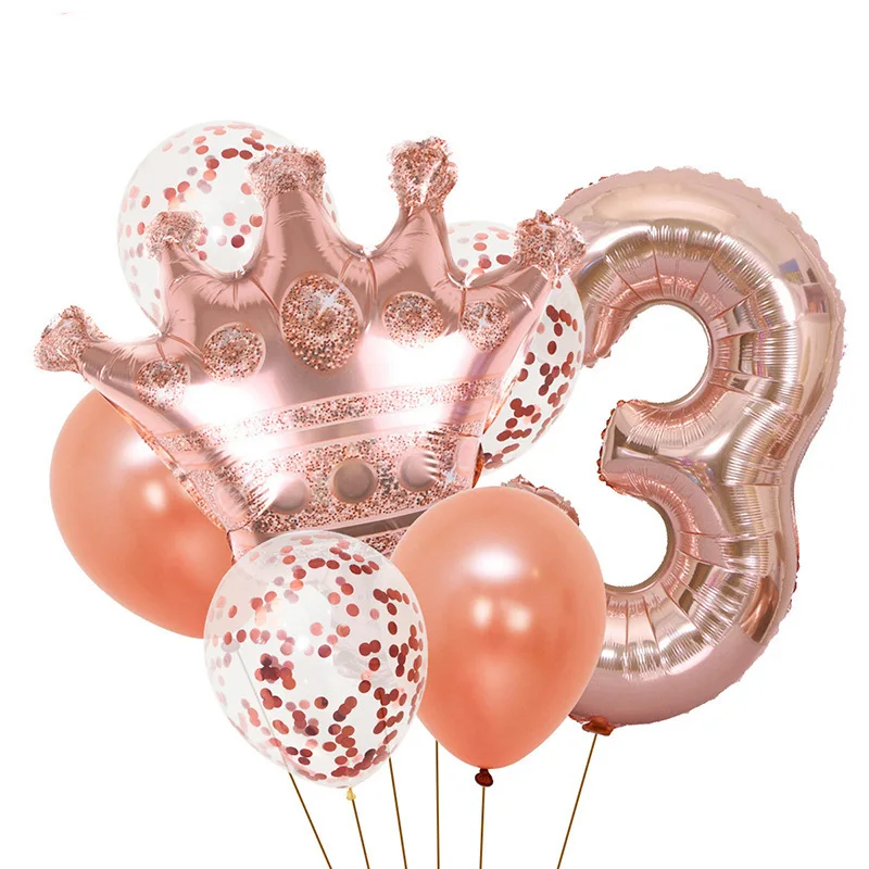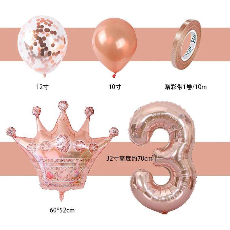 New 32 inch Rose Gold Crown Digital Balloon Set Baby Kids Birthday Party Balloon Decoration