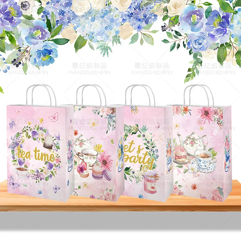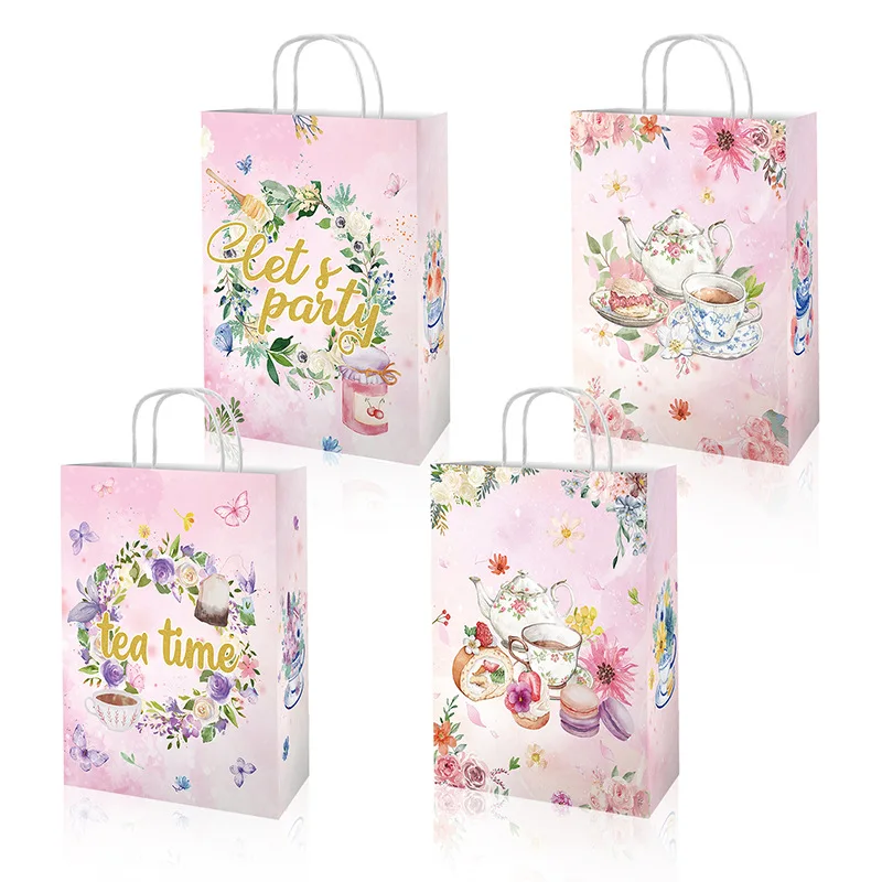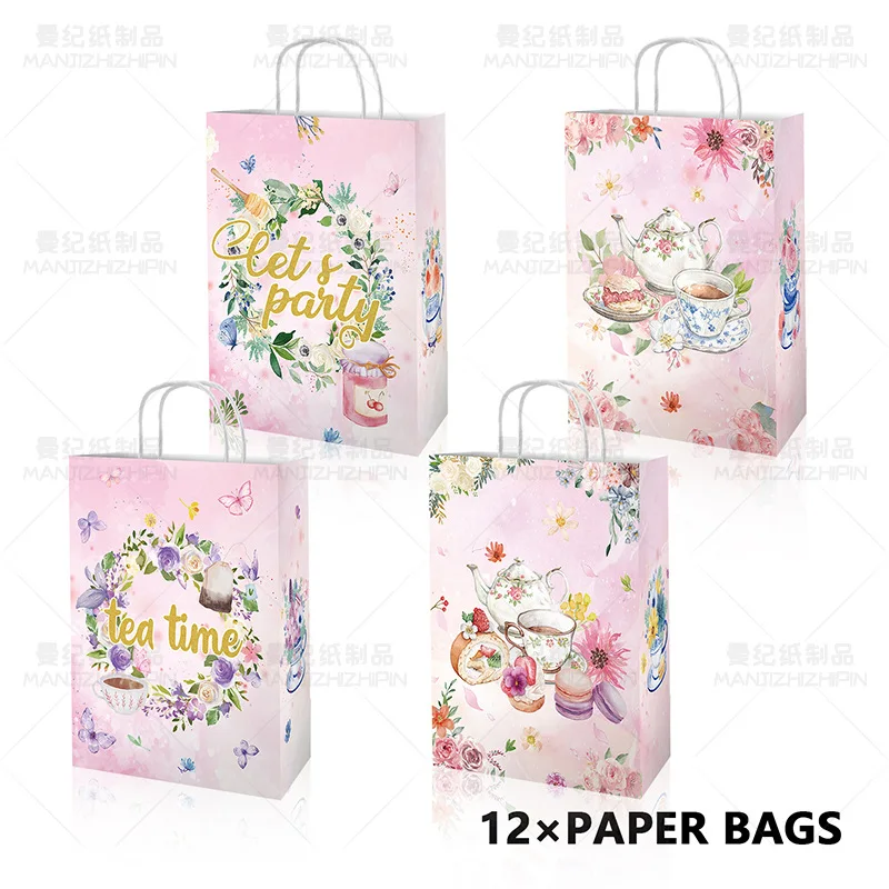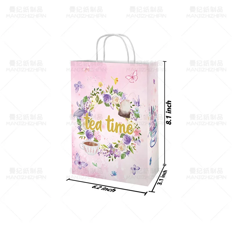 Custom 12 pcs Pink gift bag Kraft paper bag tote bag Girl's birthday party supplies