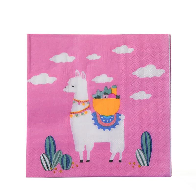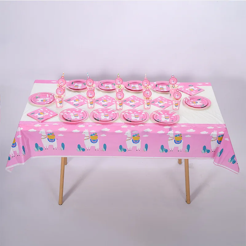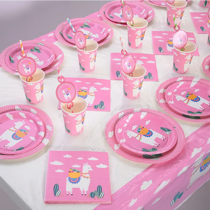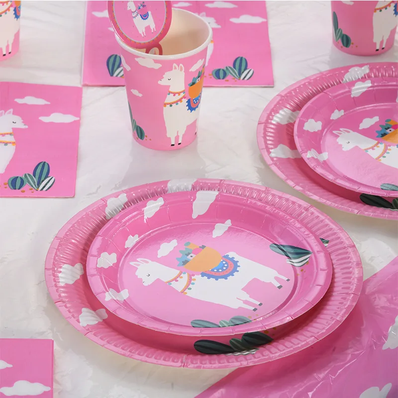 Birthday Party Disposable Tableware Creative Pink Alpaca Set Paper Plate Dinner Decoration Cute Dessert Plate