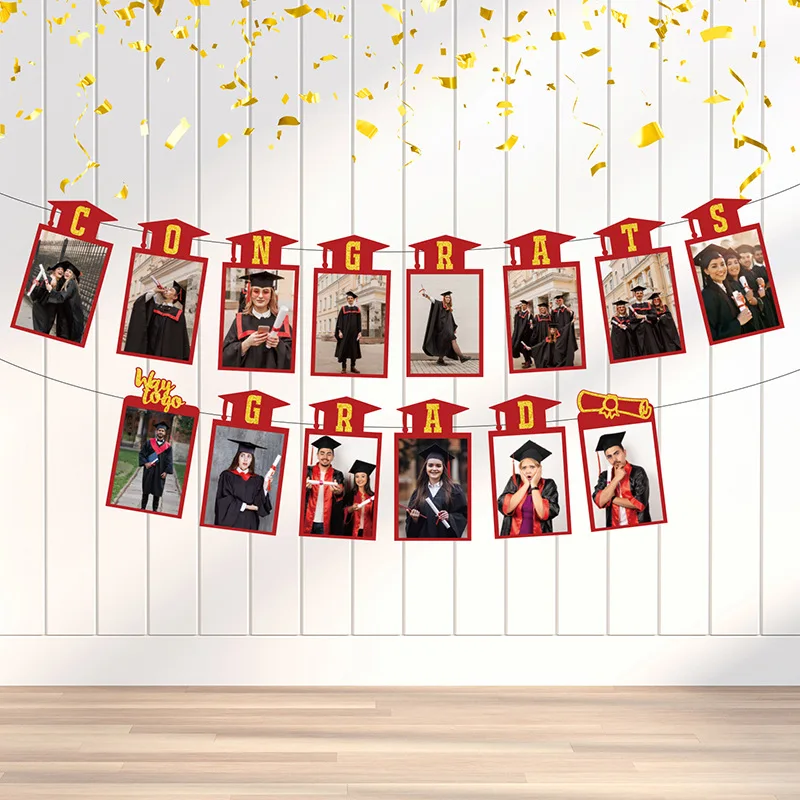 New 2024 Graduation Season Theme Student Graduation Party Banner Photo Frame Pull Flag Party Decoration Supplies