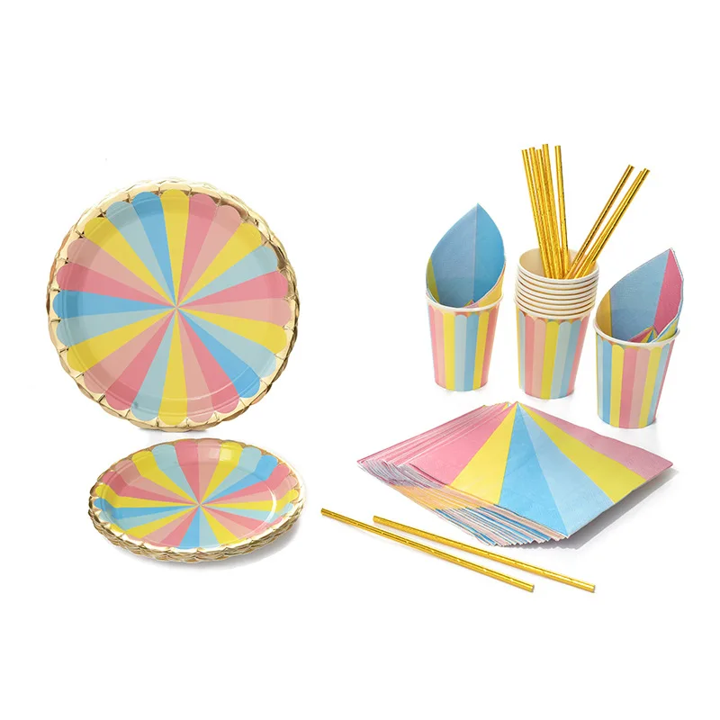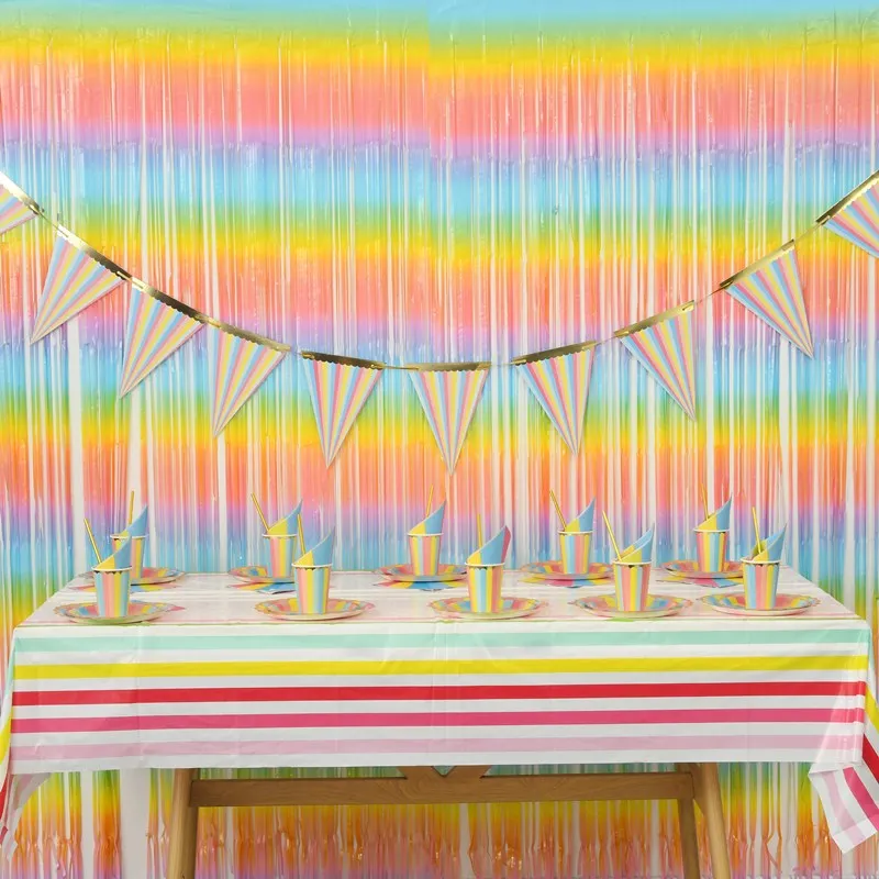 Dessert Table Disposable Tablecloth Children's Birthday Party Decoration Plate Colorful Cake Tableware Scene Decoration