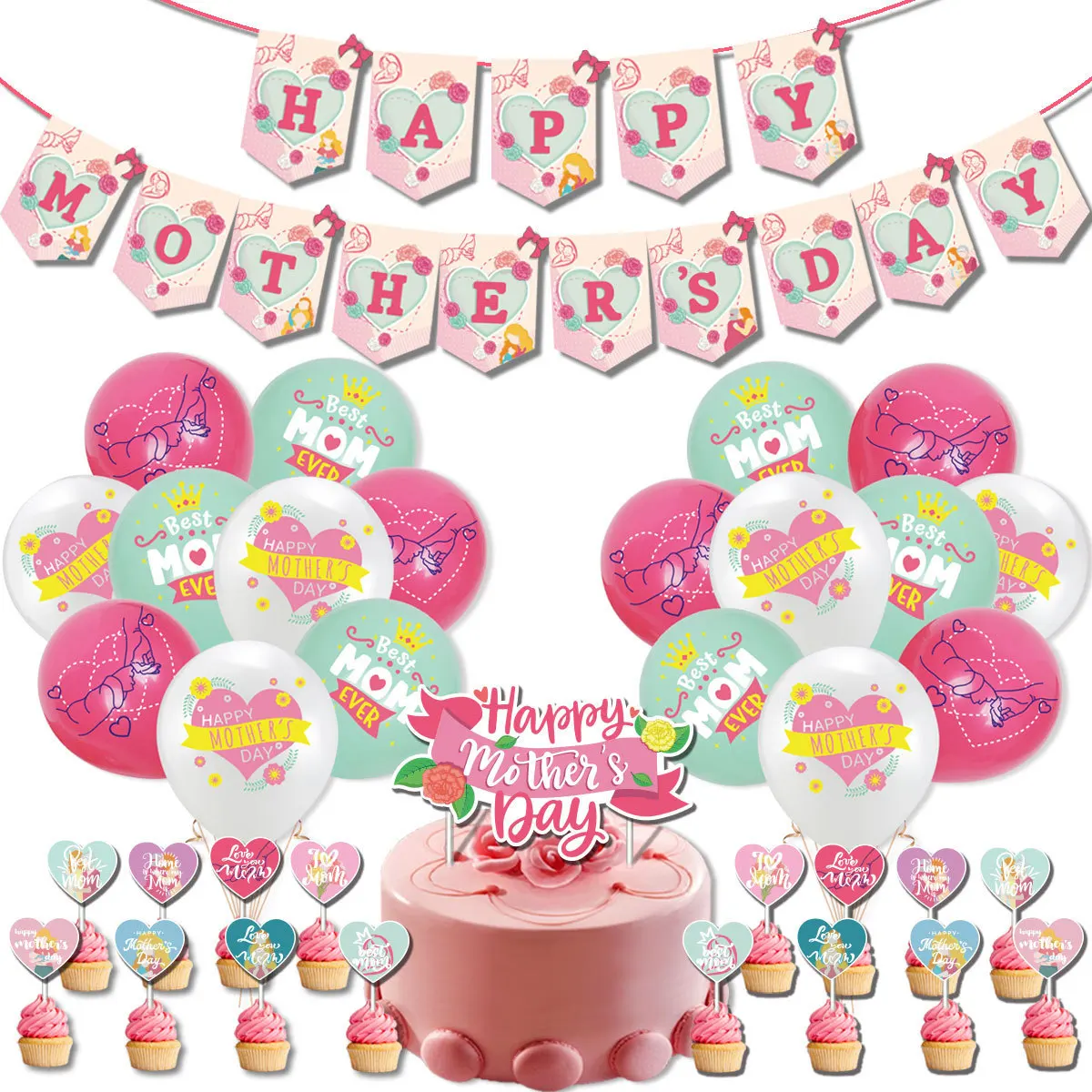Decorate Mother's Day Flag cake balloon set for happy mothers day party decorations