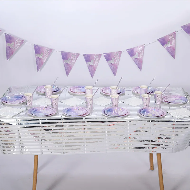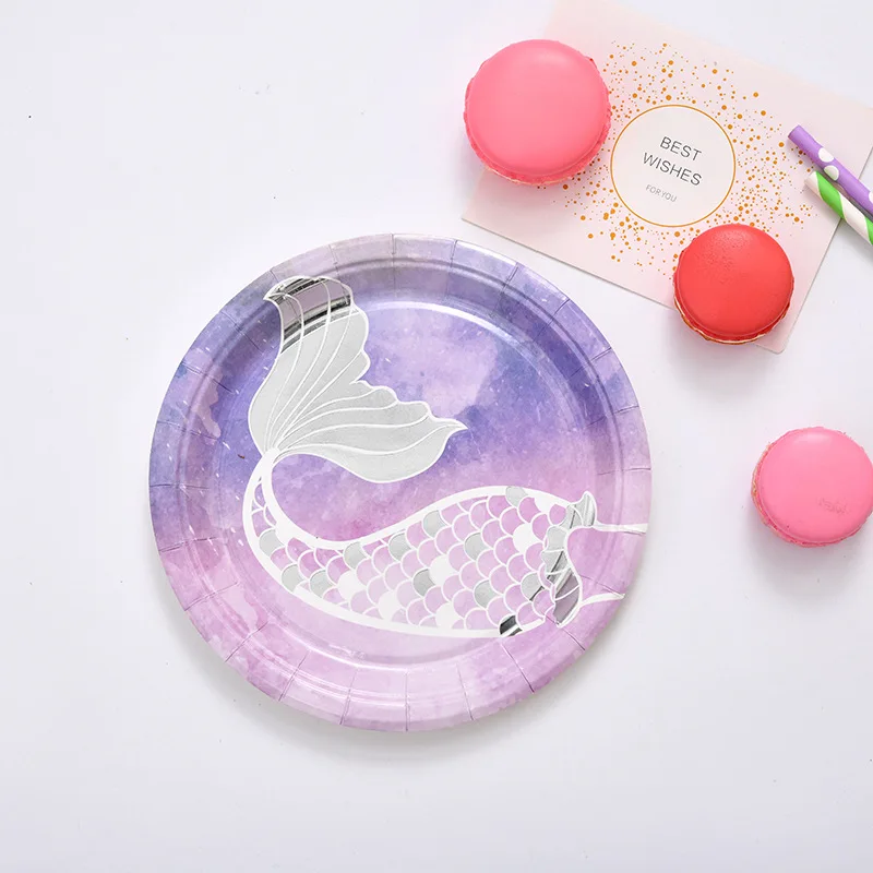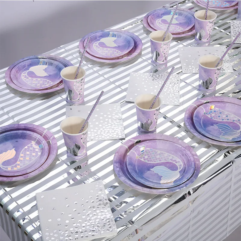 Birthday Party Disposable Cutlery Set Picnic Creative Mermaid Paper Cup Round Fishtail Paper Plate Wholesale