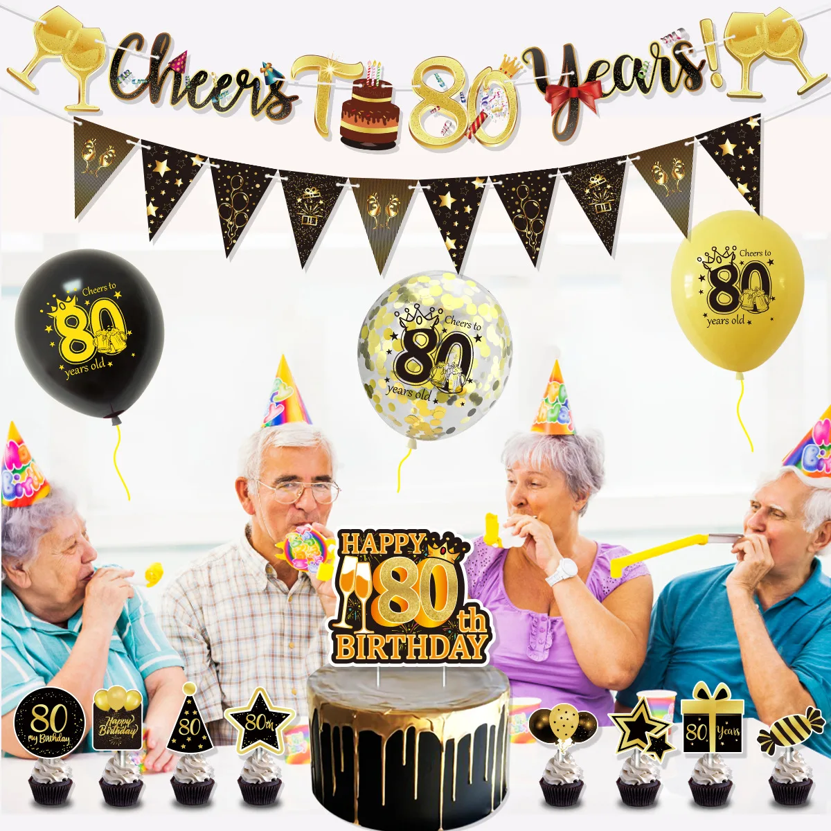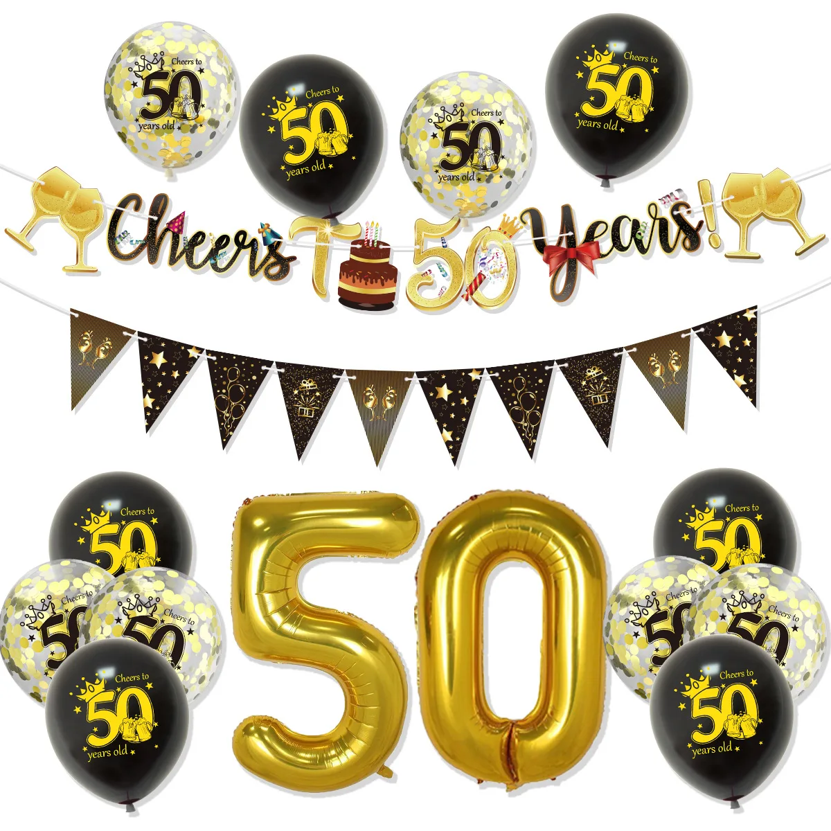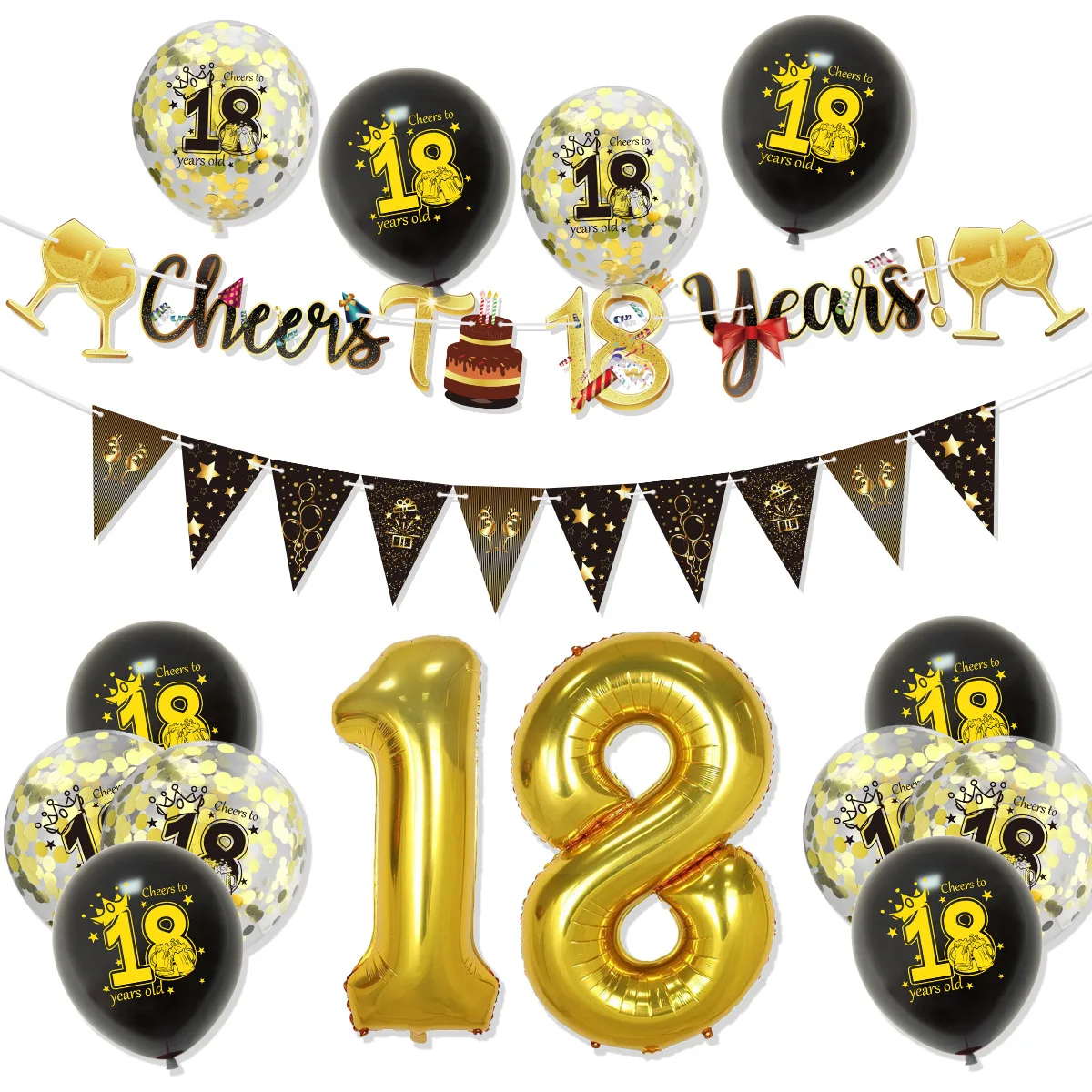 Black Gold Birthday Balloon Set