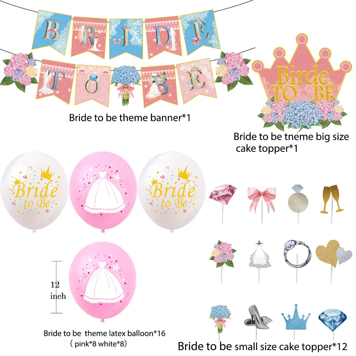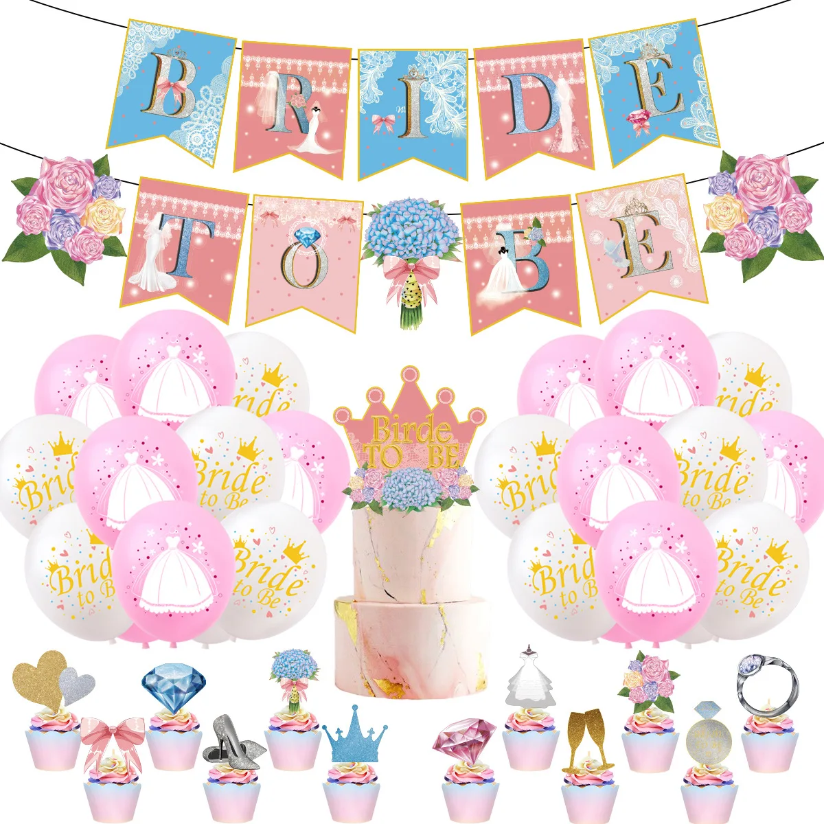 Bride to be themed bachelorette party Flag balloon cake wedding party decoration set
