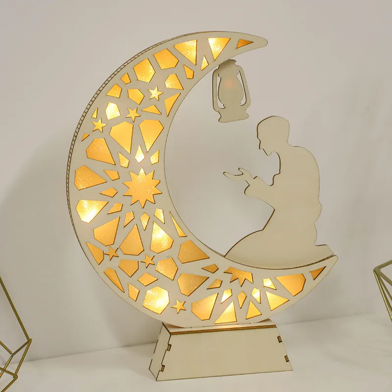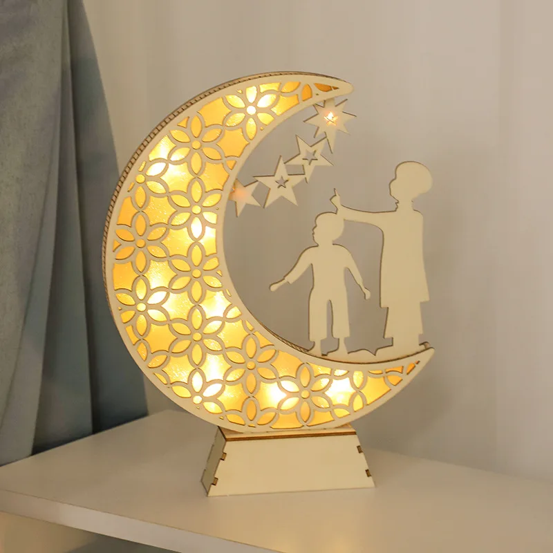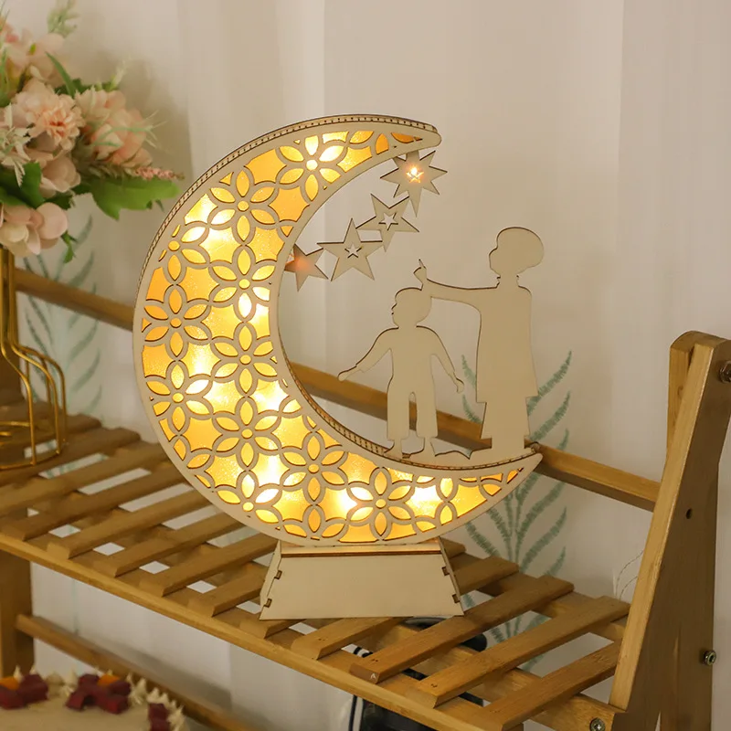 Wooden LED Wood Craft Moon Ball Light Muslim Festival Decoration Bedroom Eid al-Adha Atmosphere Modeling Light