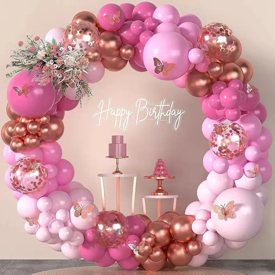 Pink rose Red metal Rose Gold sequin Balloon arch set For Wedding Birthday Party Decoration