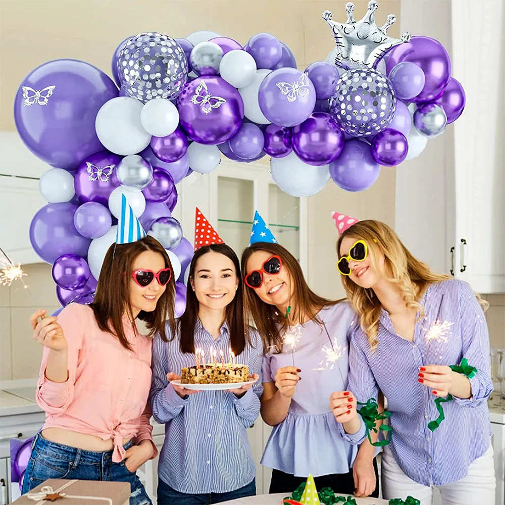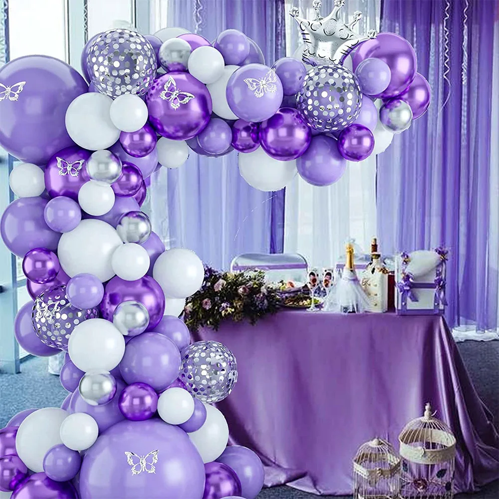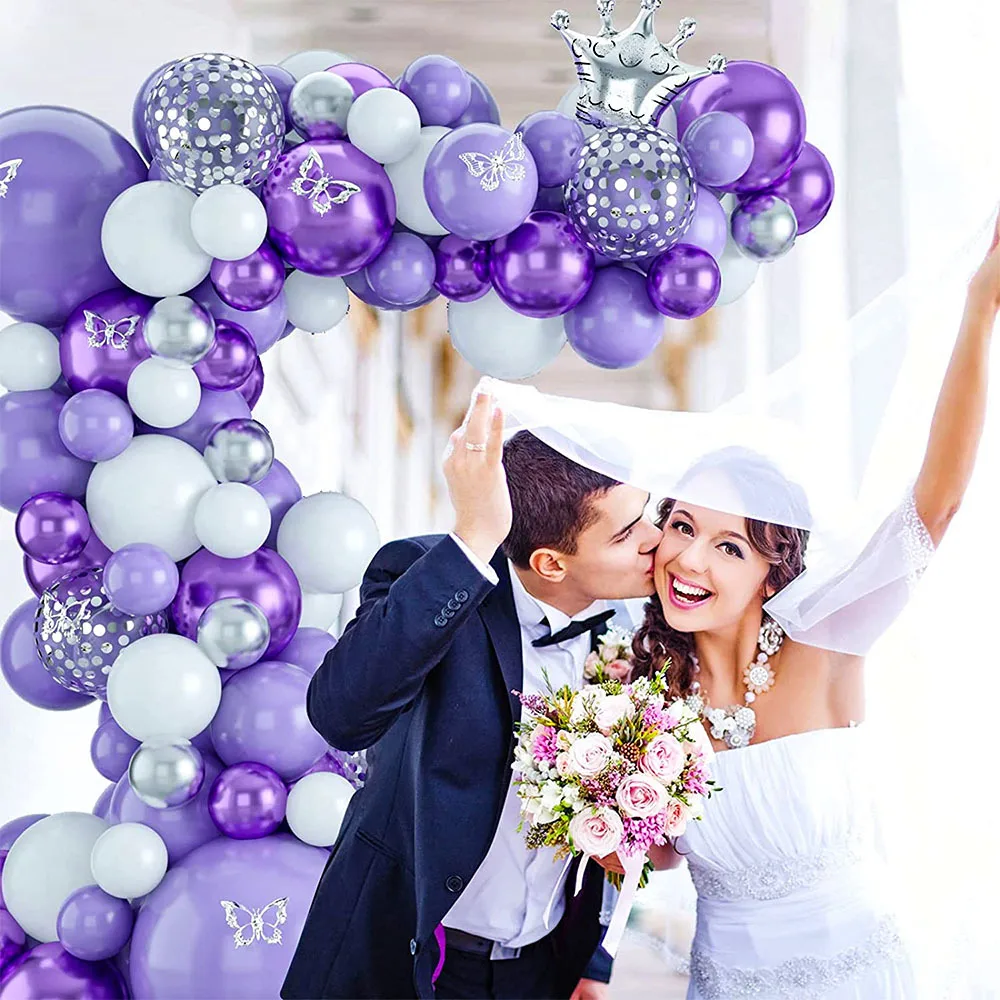 Purple balloon chain set Proposal Wedding room Macaron latex balloon butterfly sticker wedding party set