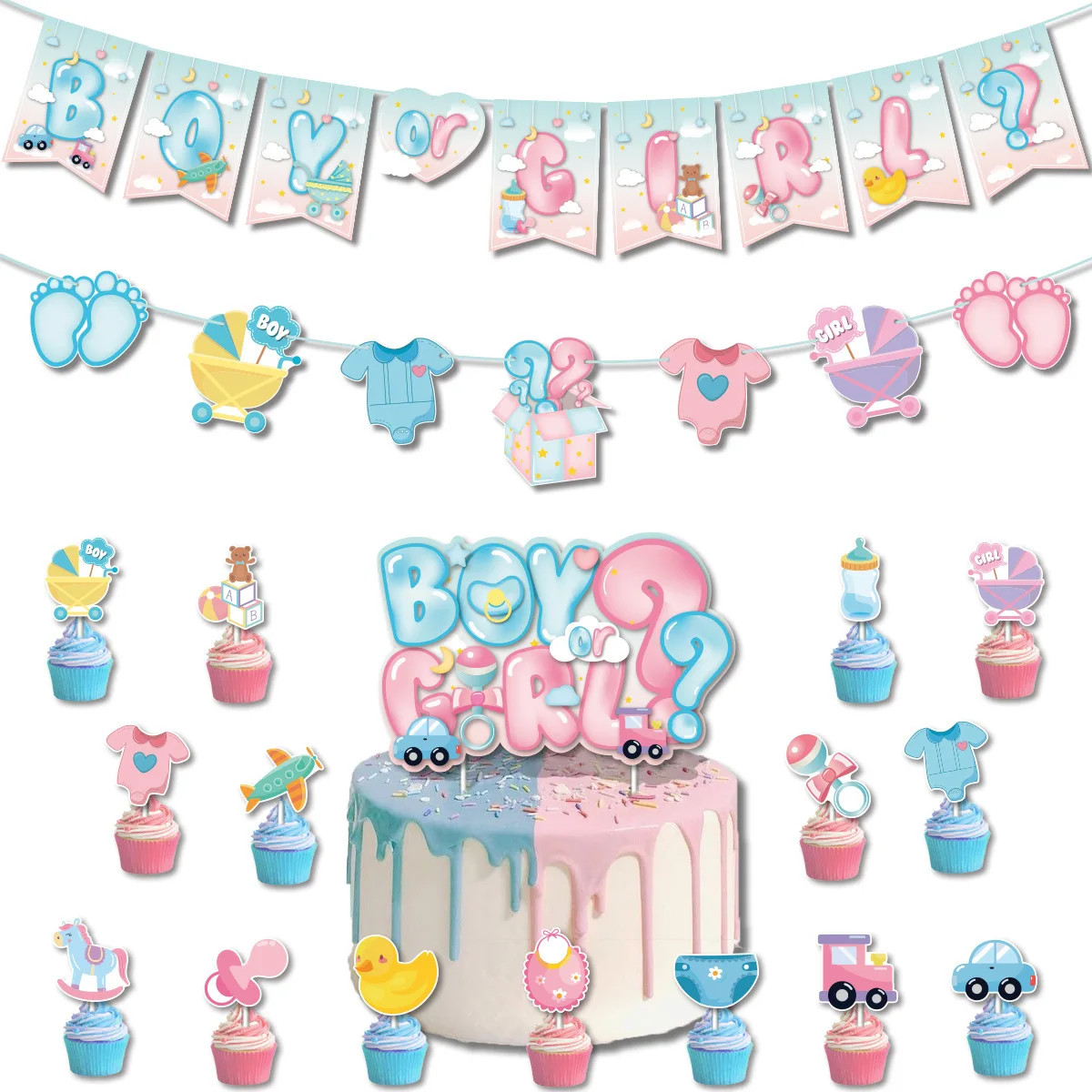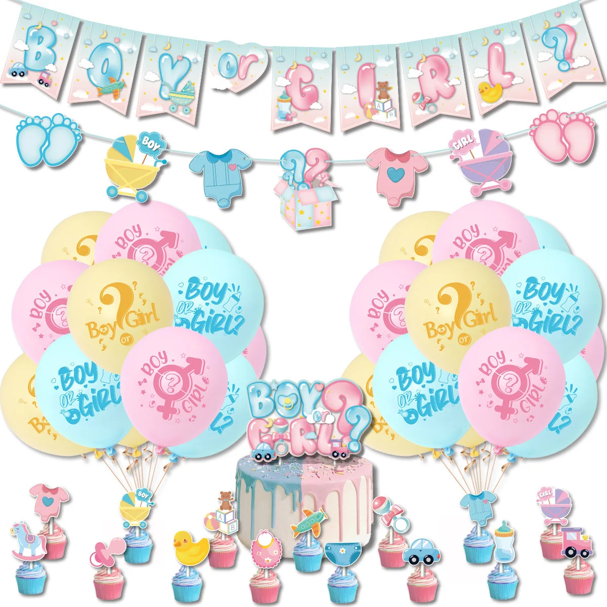 Boy Or Girl Gender Reveal Baby Shower Birthday Party Decoration Supplies Set Balloon Kit Latex Cake Topper Favor Party Supplies