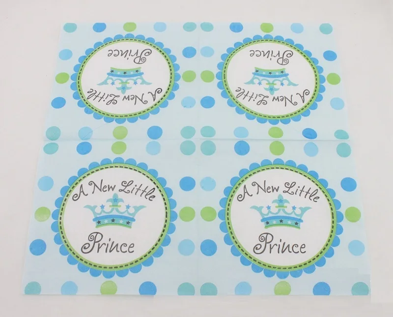 Baby Birthday Little Prince Double Layers Printed Paper Tissues Napkin Set For Baby Shower Party Supplies