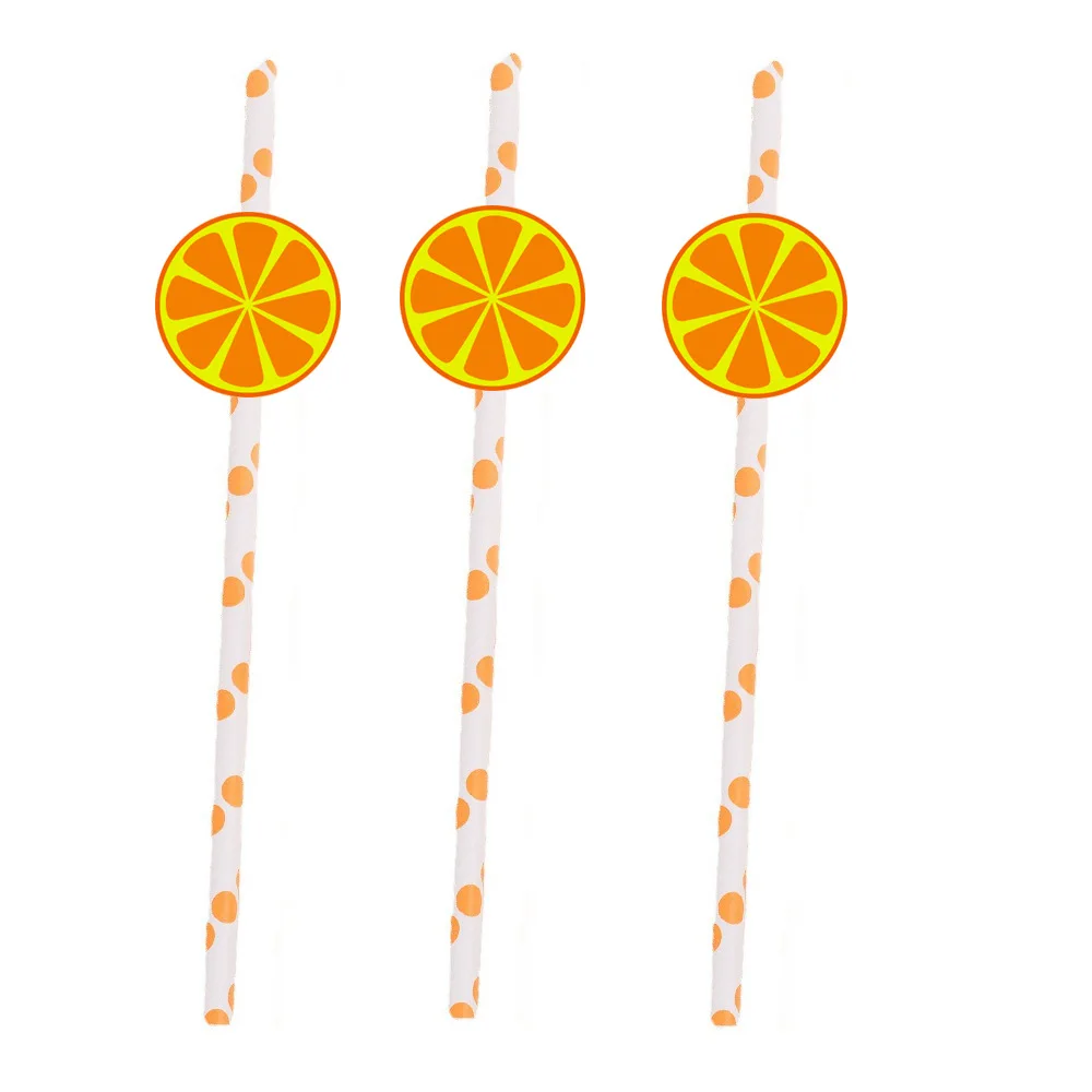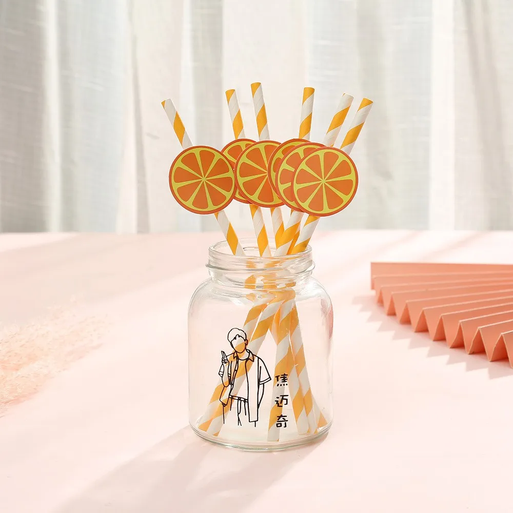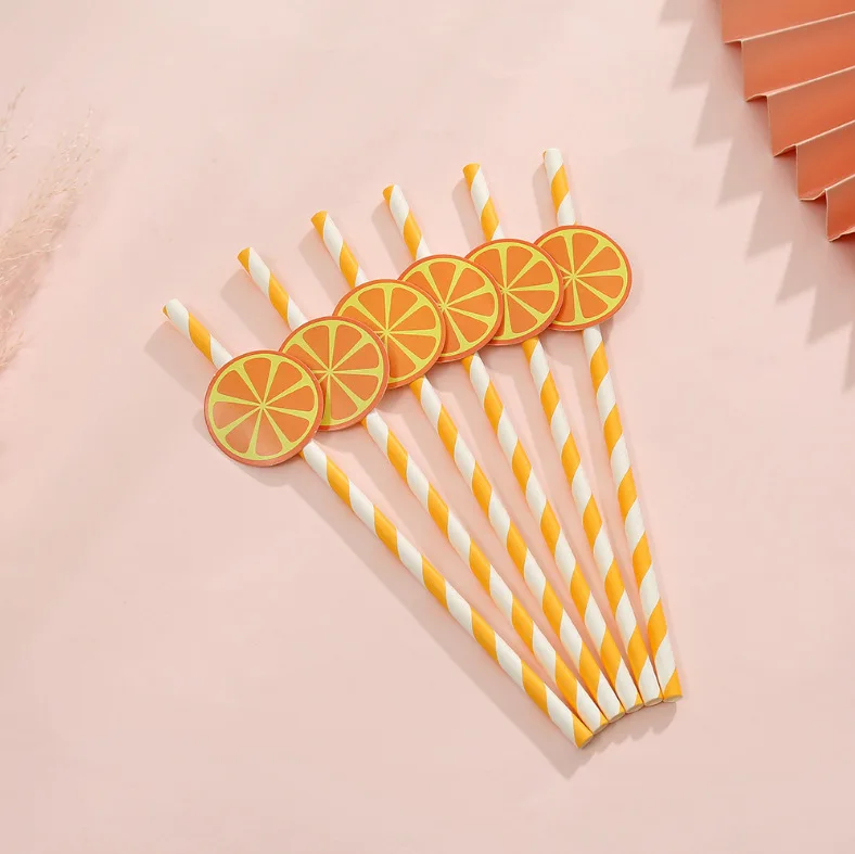 Fruit Orange Theme Party Card Straw Decoration For Birthday Party Tableware Supplies