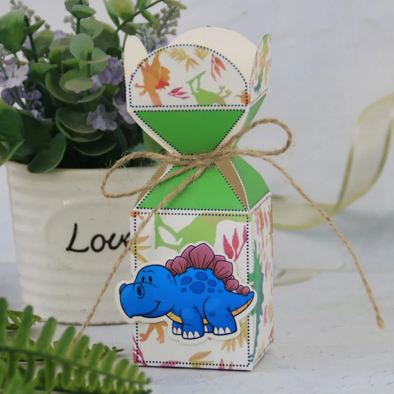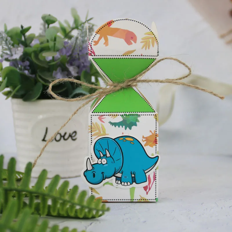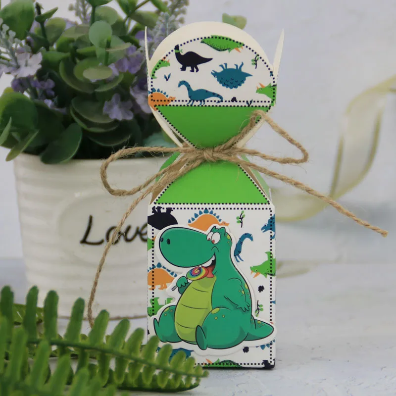 Green Dinosaur Printed Mini Paper Candy Box Set For Birthday Party Supplies