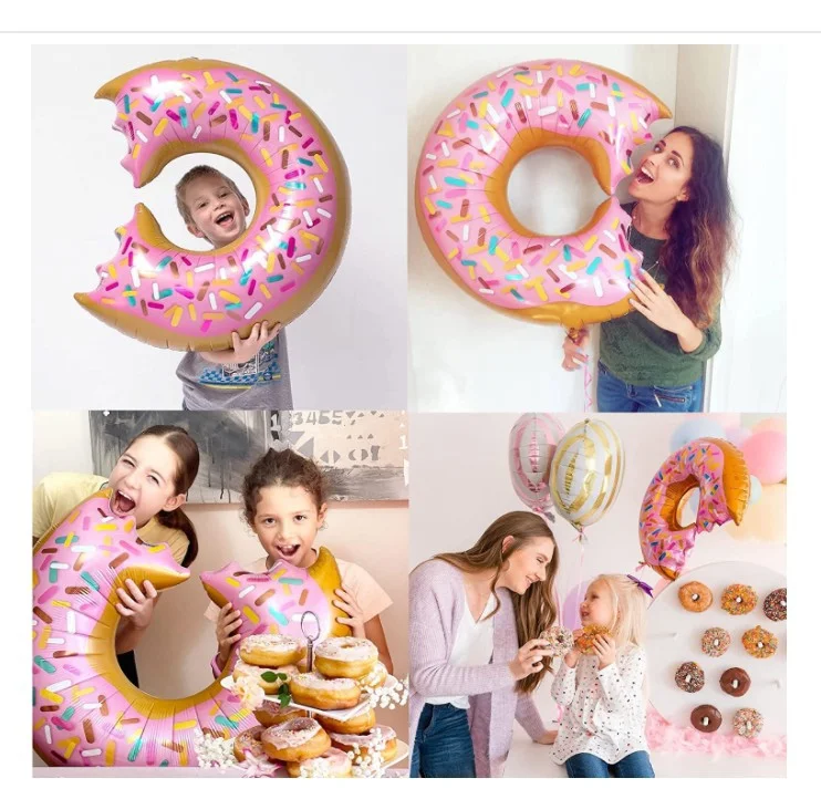Each set includes | 169pcs: 10* 18inch latex balloon (pastel pink×2, pastel blue×2, pastel green×2, pastel purple×2, pastel yellow×2) 75* 10inch latex balloon (pastel pink×15, pastel blue×15, pastel green×15, pastel purple×15, pastel yellow×15) 50* 5inch latex balloon (pastel pink×10, pastel blue×10, pastel green×10, pastel purple×10, pastel yellow×10) 3* 18inch Donut foil balloon (bitten doughnut×1, green×1, pink×1) 2* 18inch donut star foil balloon 25* macarone magic long balloon 1* dot glue 1* ribbon 1* balloon tie tool 1* 16ft balloon strip |