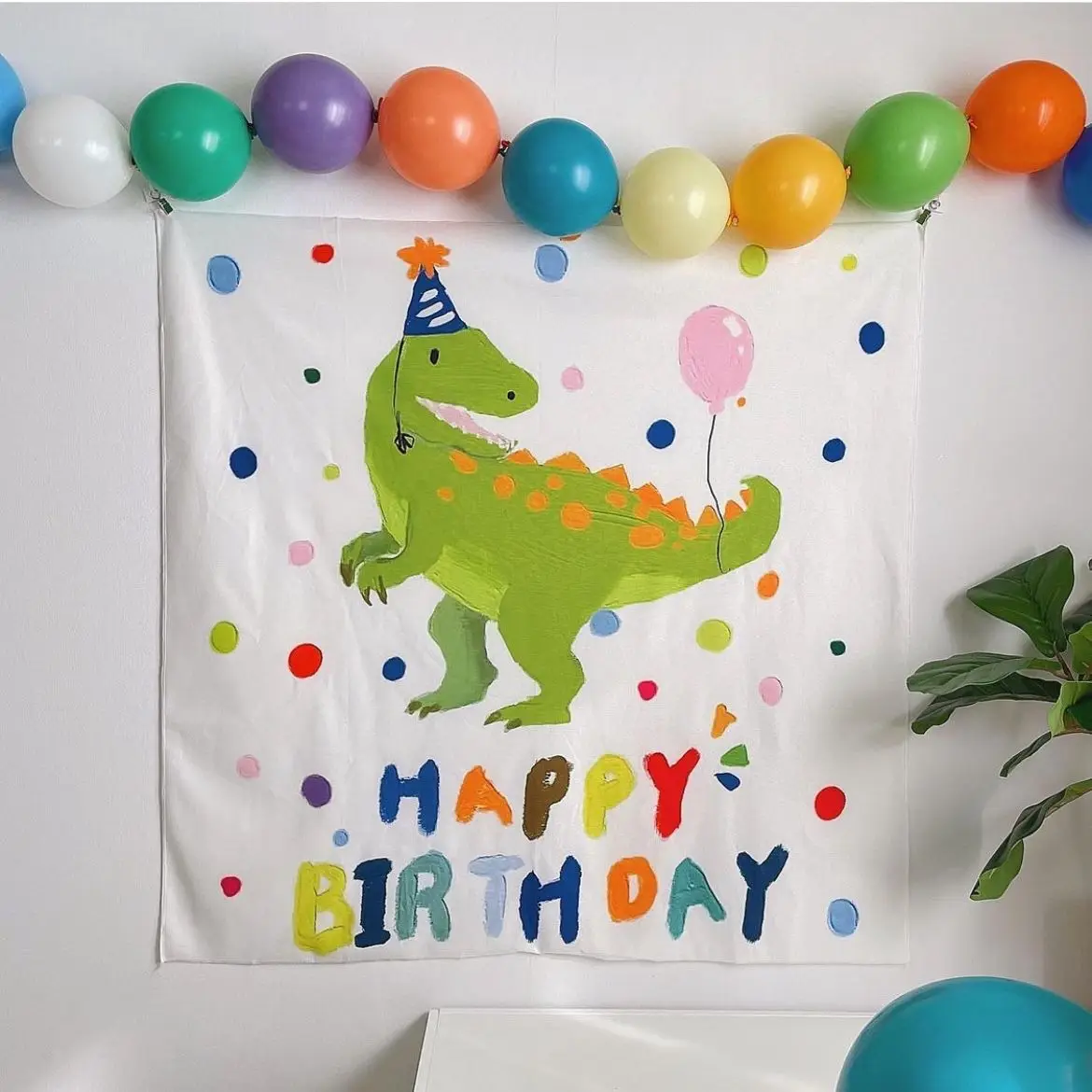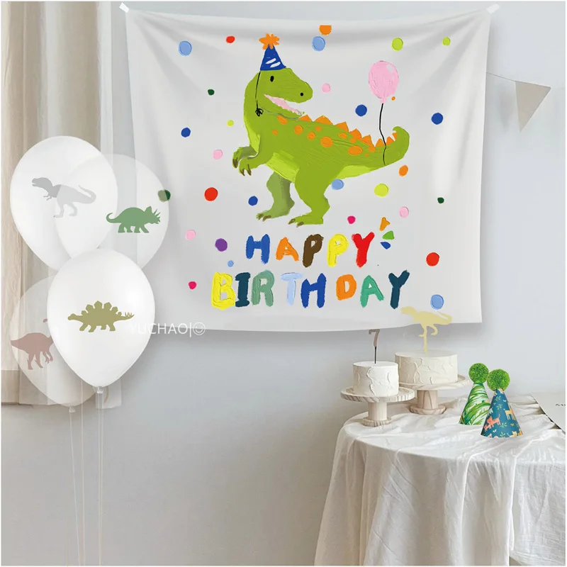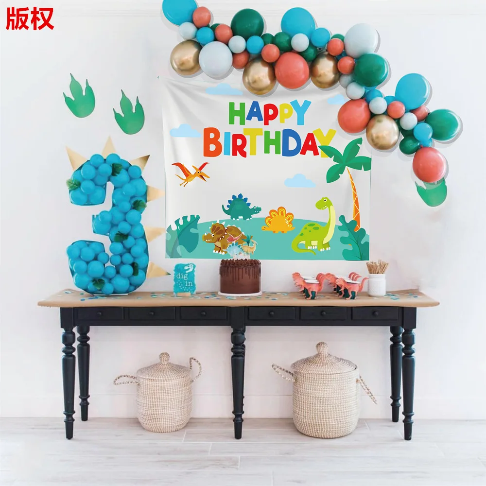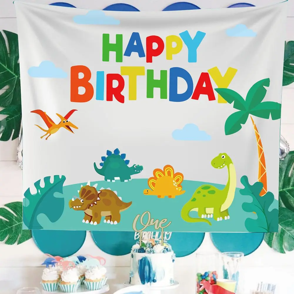 90*90cm Happy Birthday Dinosaur Party Background Wall Decoration Backdrop Children's Bedroom Dinosaur Cloth Photo Decoration