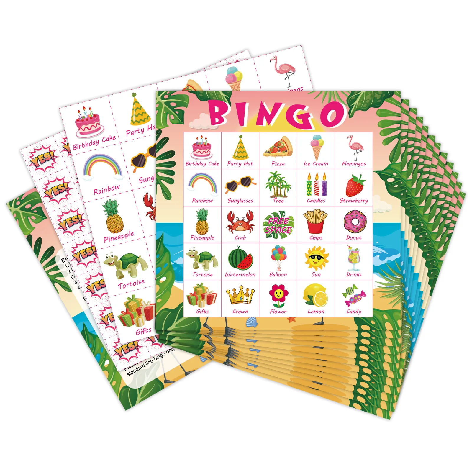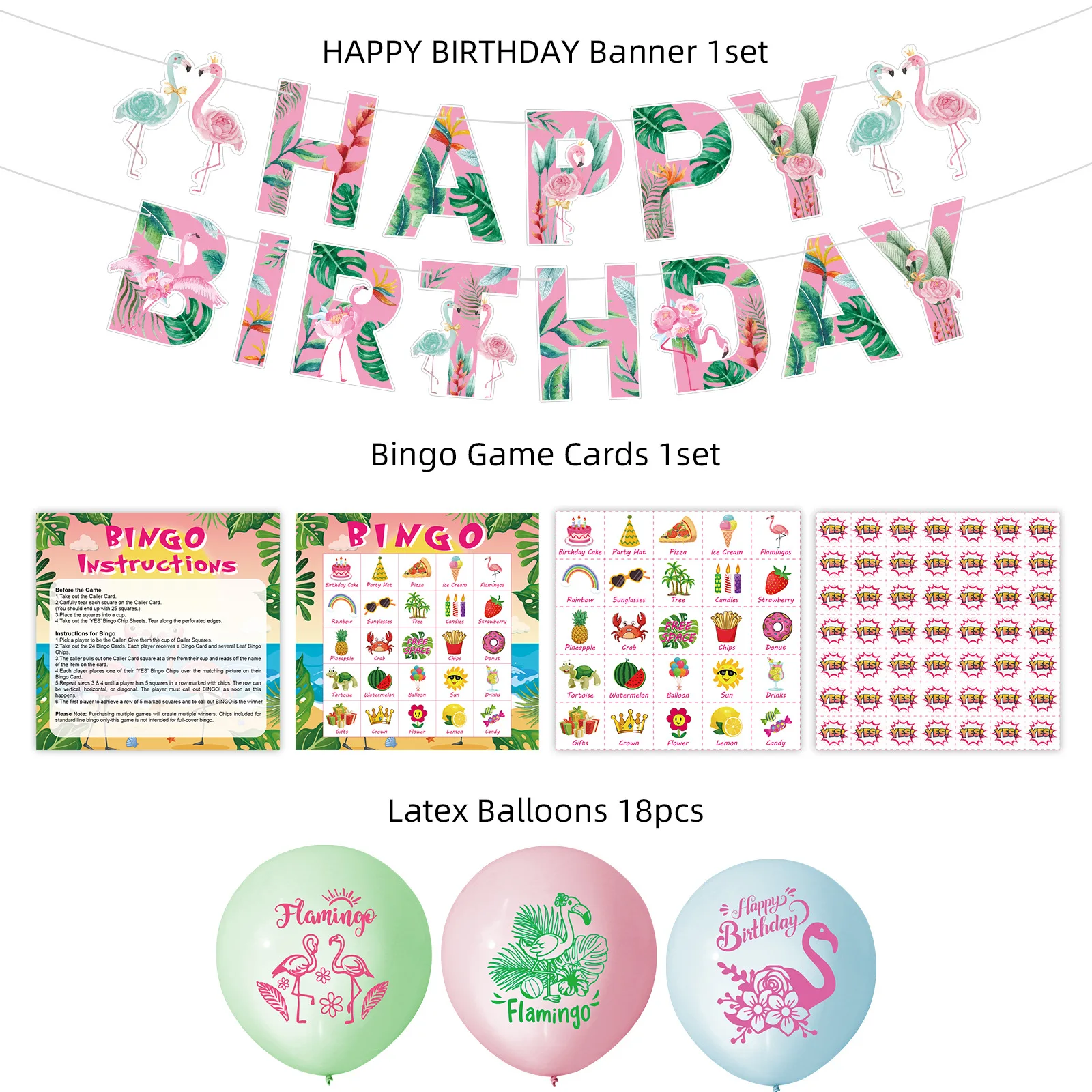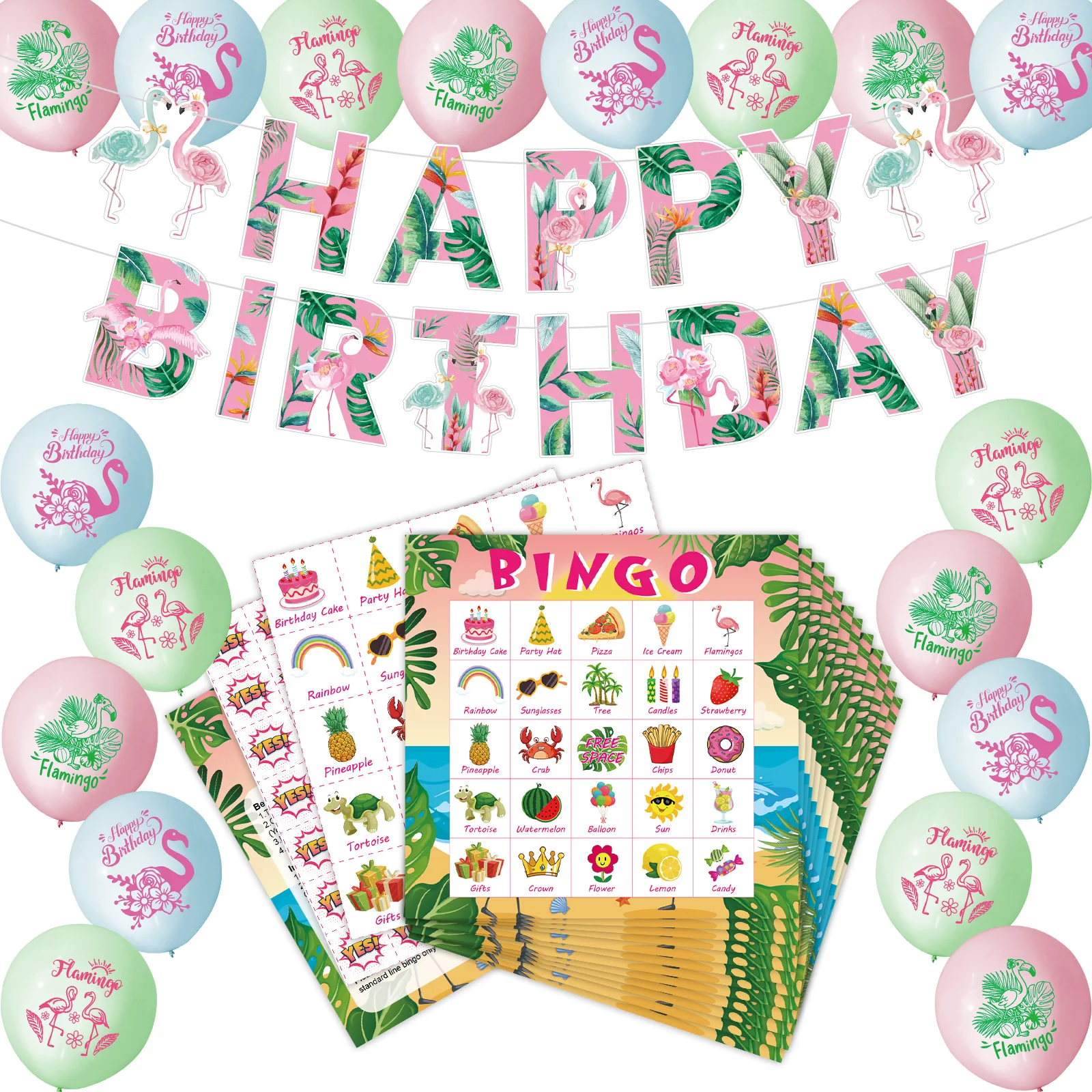 Hawaiian Flamingo Happy Birthday Banner Bingo Game Cards Pastel Color Latex Balloons For Summer Holiday Party Decorations