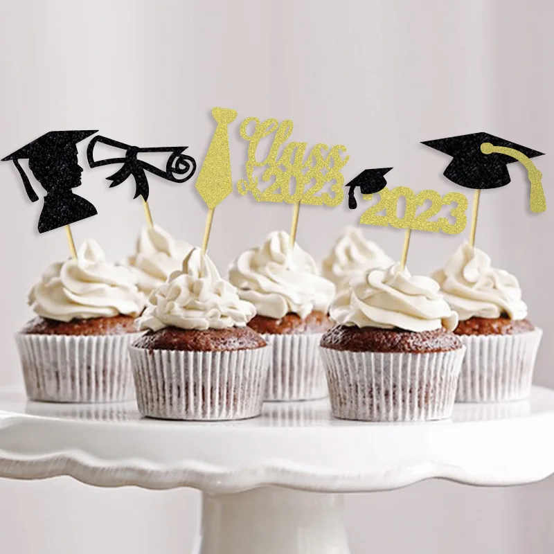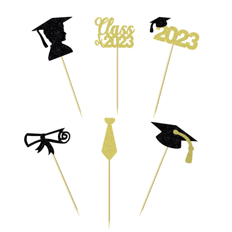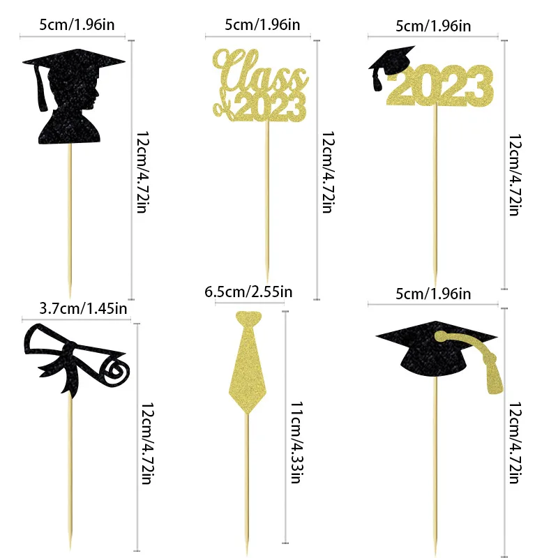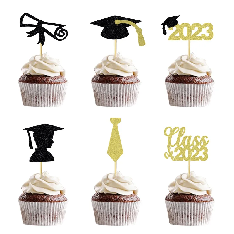 Class2023 Tie Certificate Graduation Cup Cake Insert Card Boys Graduation Theme Party Decoration Cupcake Toppers