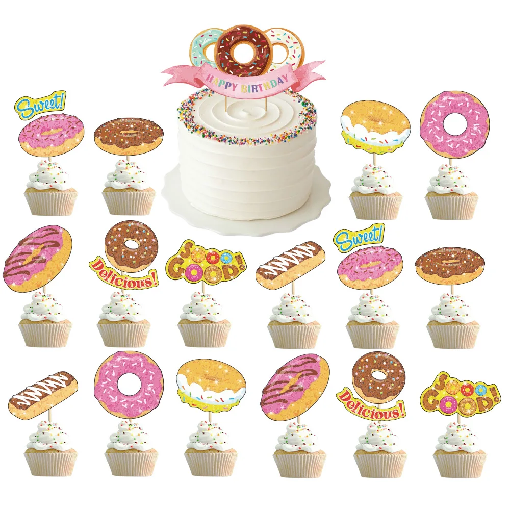 Each set includes | 39pcs: 1* Happy Birthday Banner 16* cupcake topper 1* cake topper 20* latex balloon (Blue×6, Yellow×6, Pink×8) |