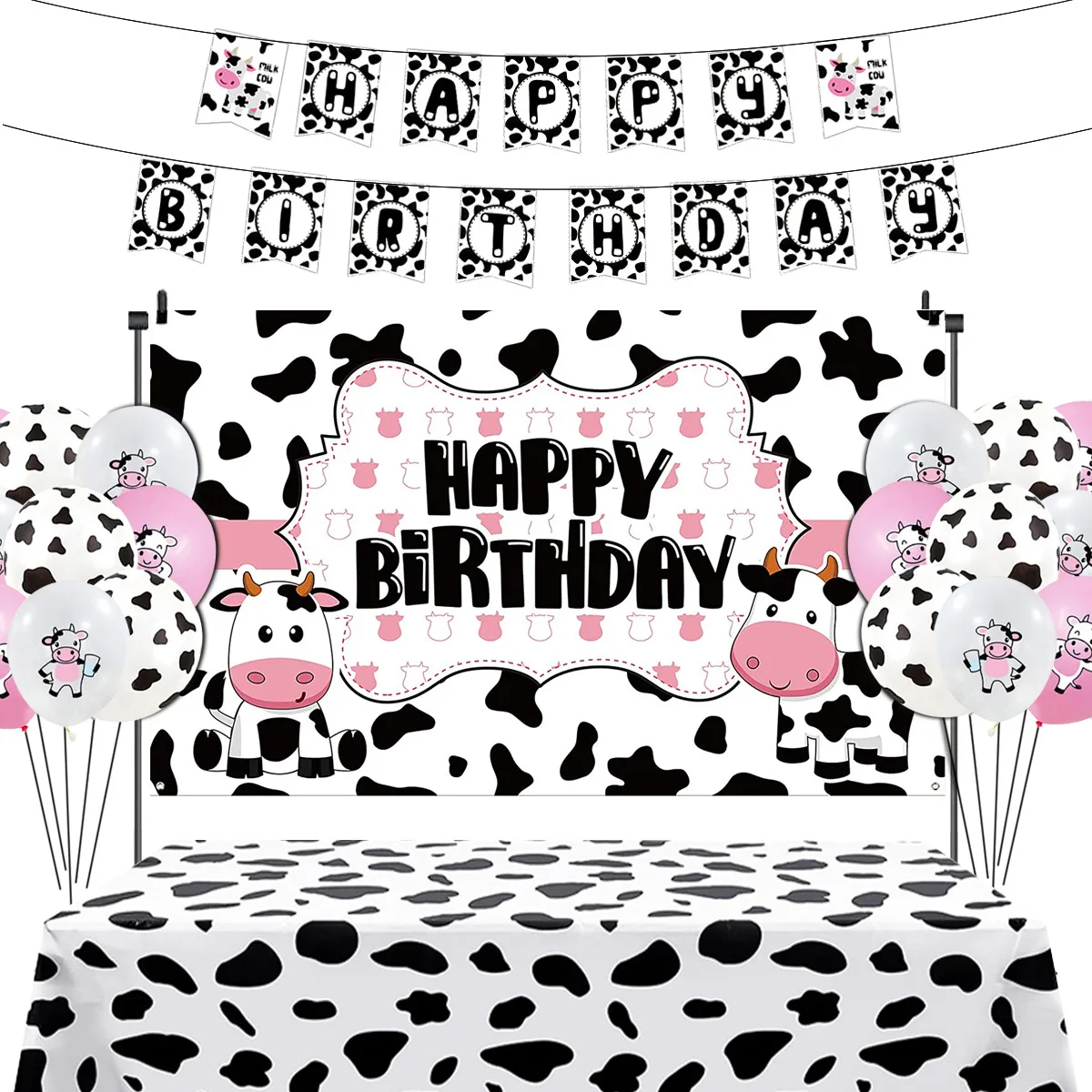 Cow Print Birthday Party Favors Kids Farm Cows Theme Banner Happy Birthday Backdrop Table Cloth Latex Balloons Set
