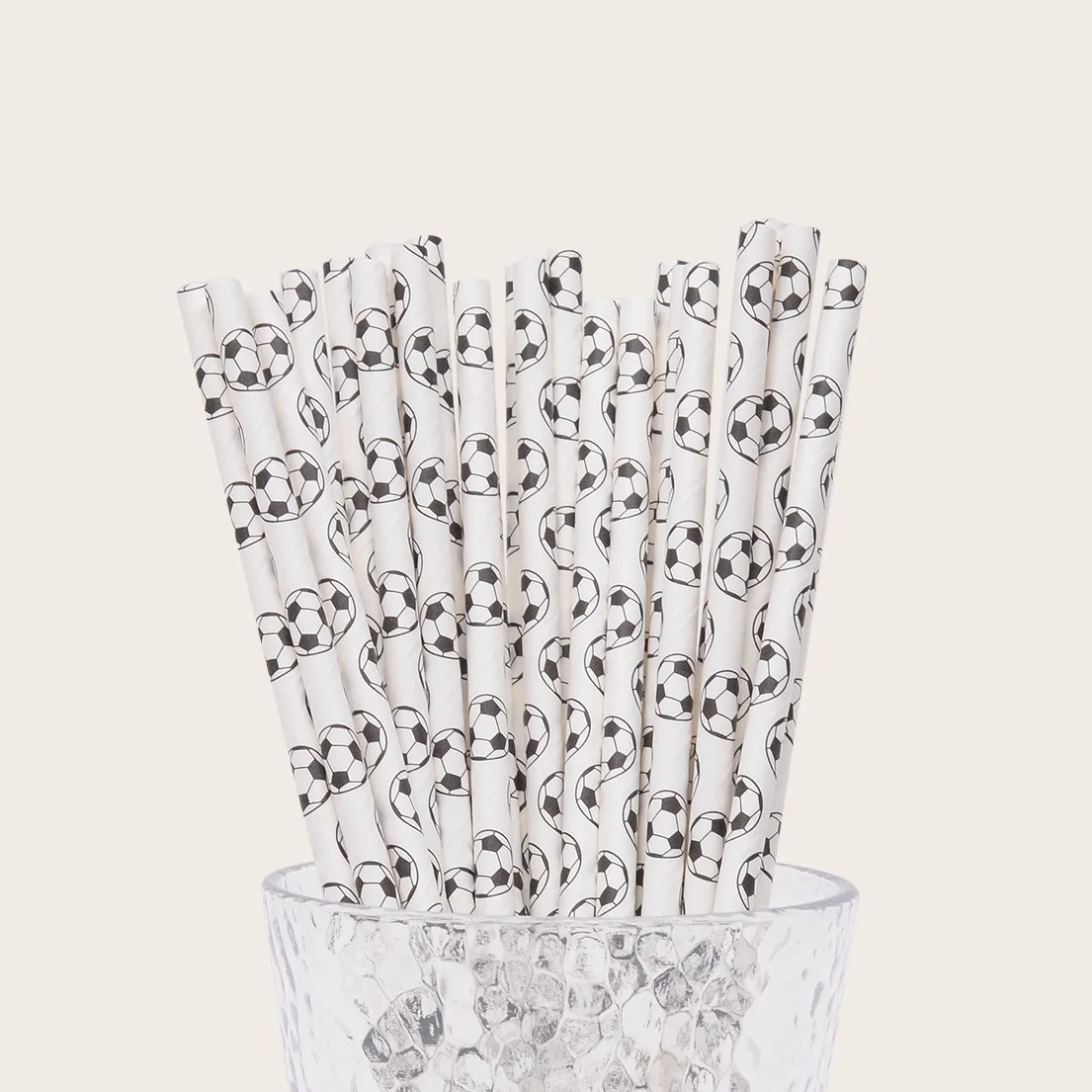 Disposable Degradable Printed Black White Footballs Paper Straws