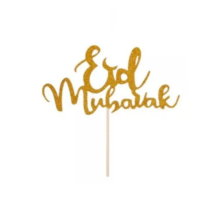 EIDMUBARAK Golden Party Decorations Baked Cake Dessert Insert Toppers