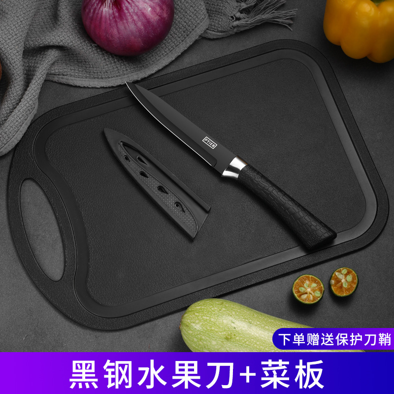 black steel three-piece set [fruit knife + paring knife + cutting board] get blade sheath free