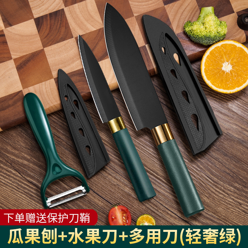 black steel three-piece set [fruit knife + chef knife + peeler] get blade sheath free