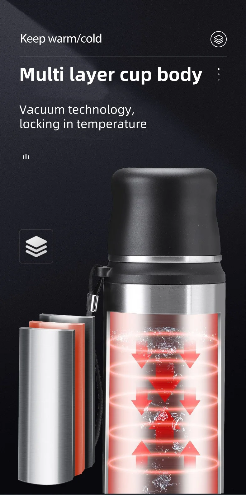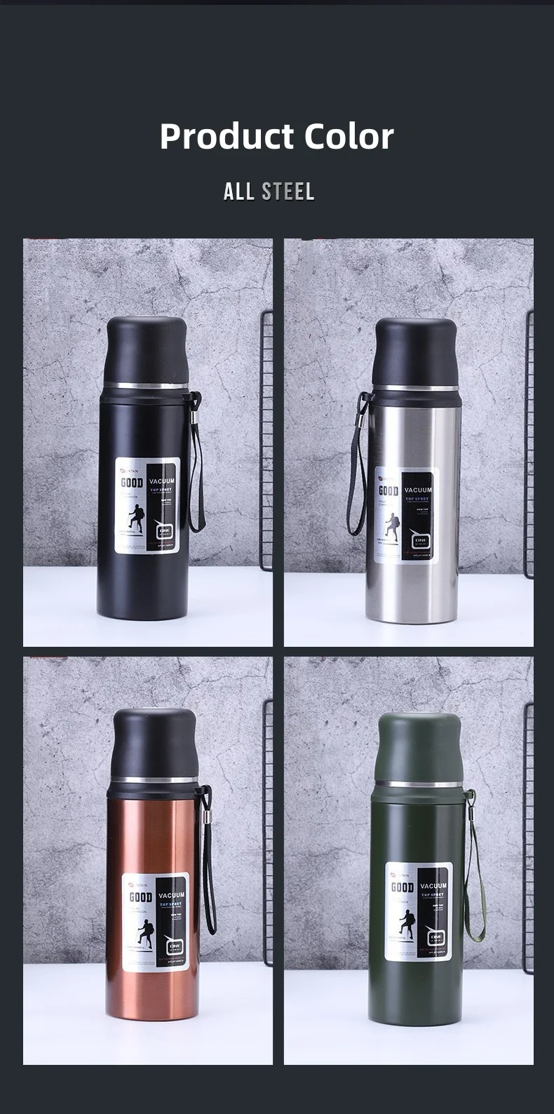 Outdoor travel sports large capacity stainless steel insulated water bottle