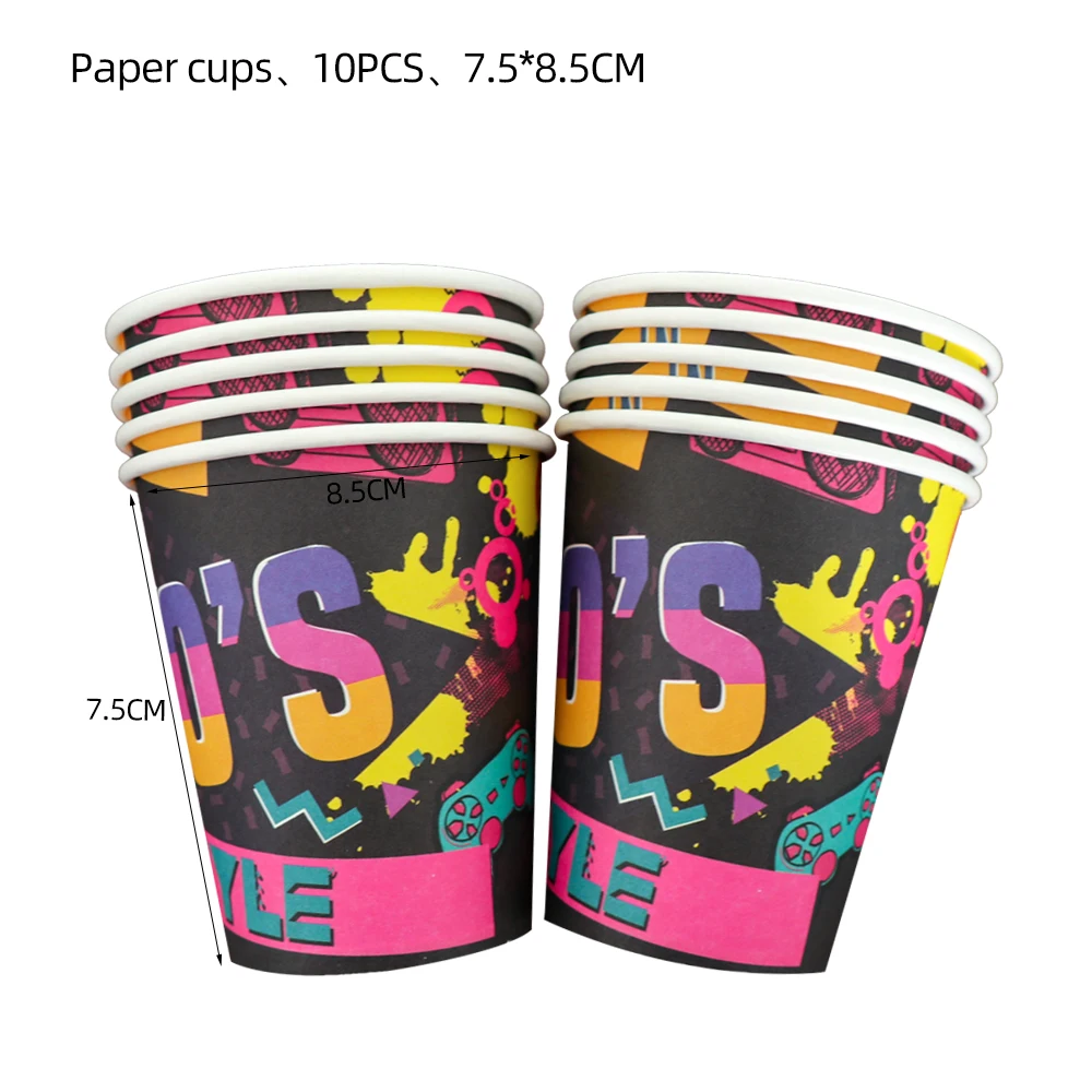 Wholesale Custom Print 1990s Rock Style Decoration Birthday Party Cake Disposable Tableware Paper Plates And Cups For Food