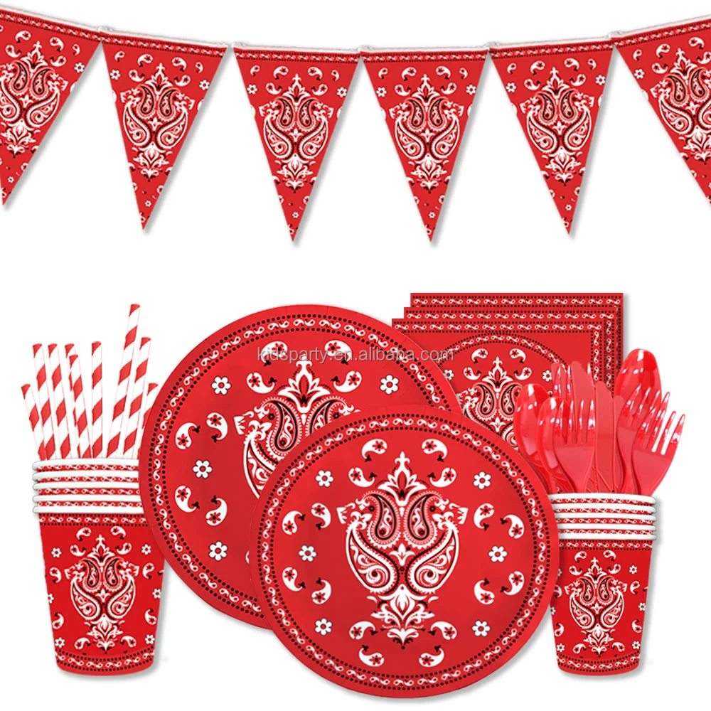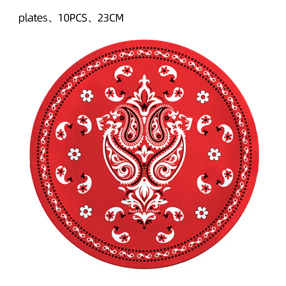 Factory Direct Custom Print Red Cowboy Decoration Birthday Party Cake Disposable Tableware Paper Plates And Cups For Food