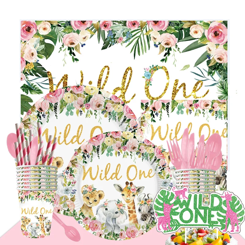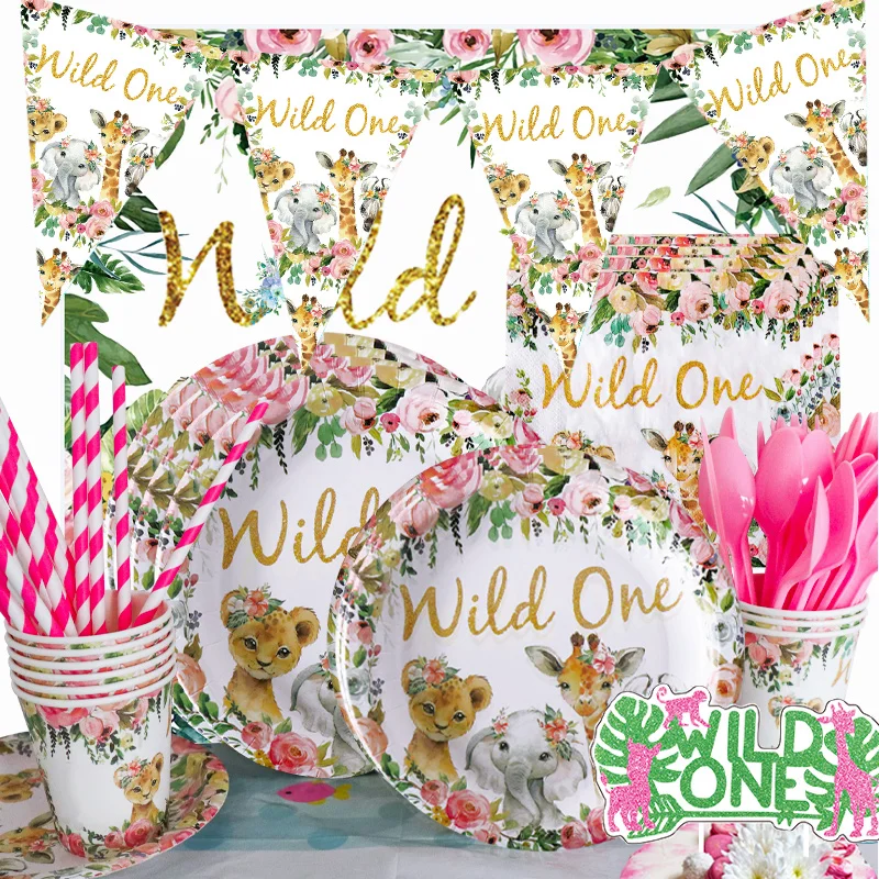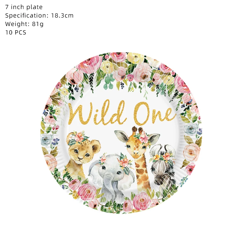 Wild Animals Theme Wholesale Custom Print Decoration Birthday Party Cake Disposable Tableware Paper Plates And Cups For Food