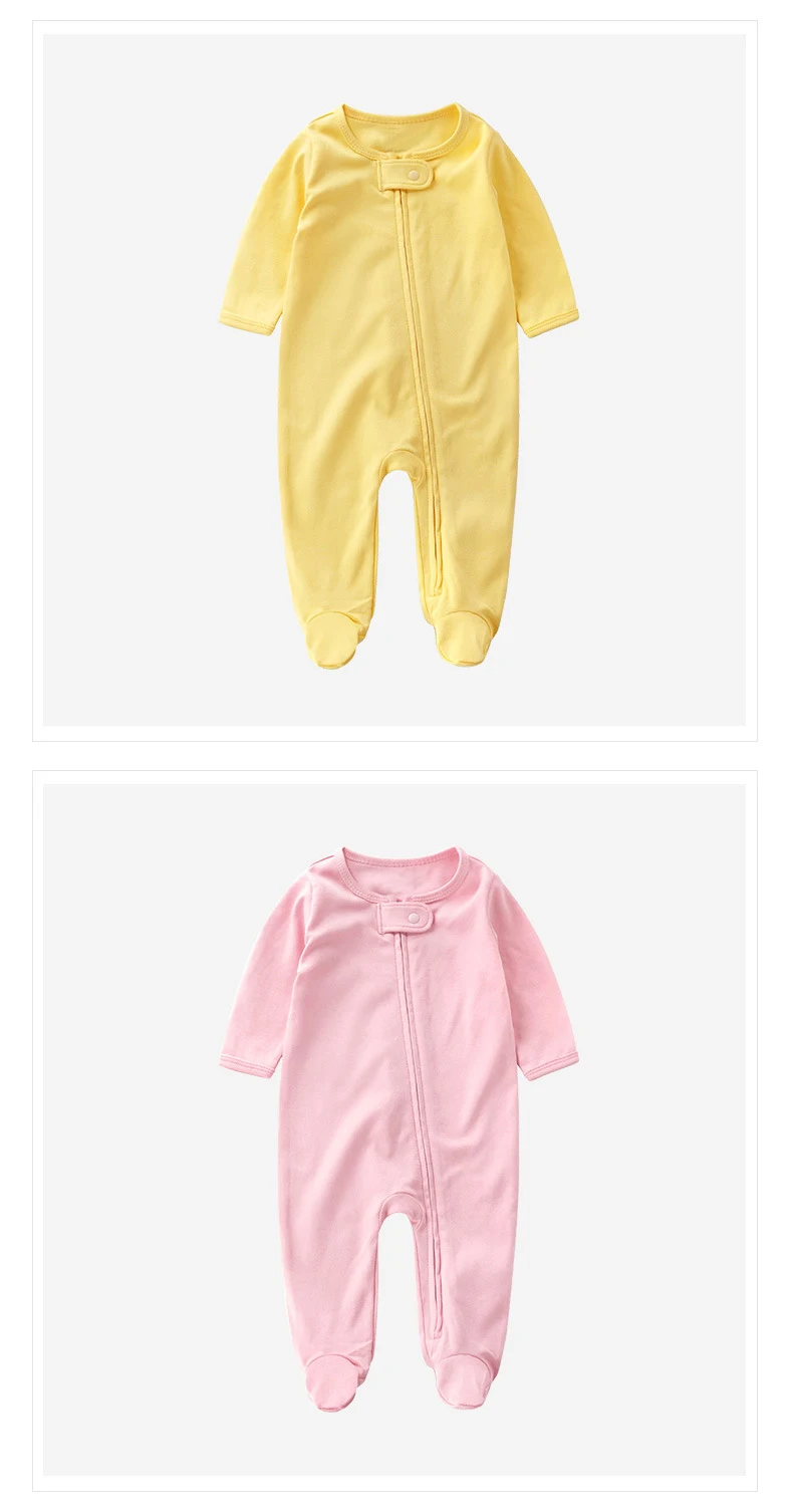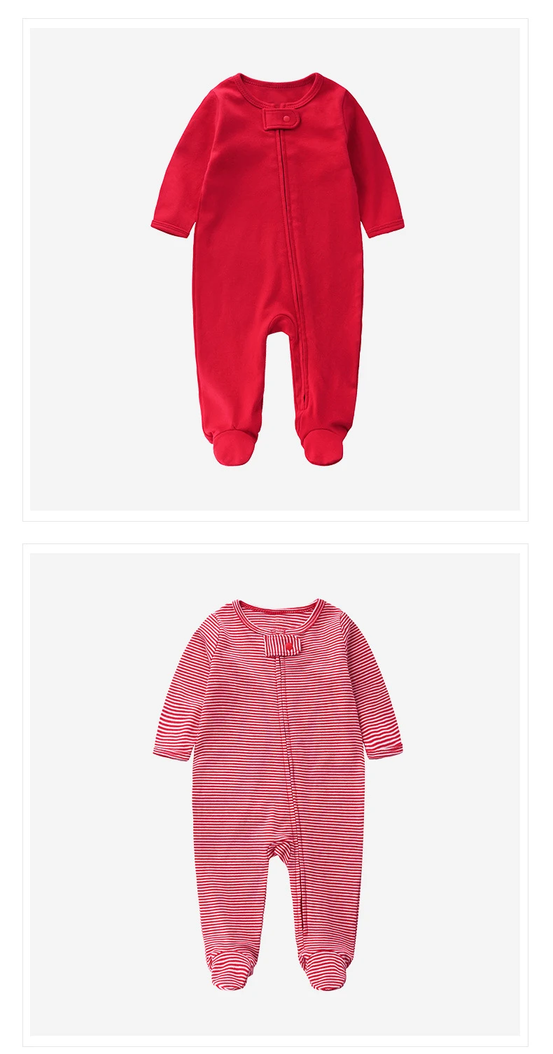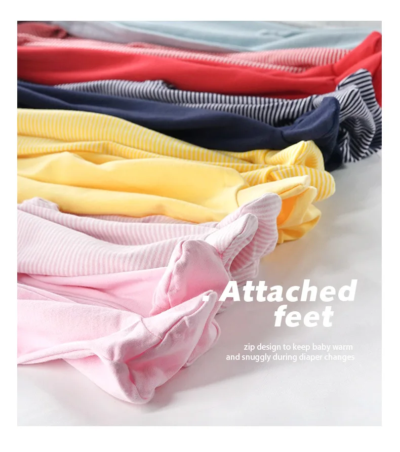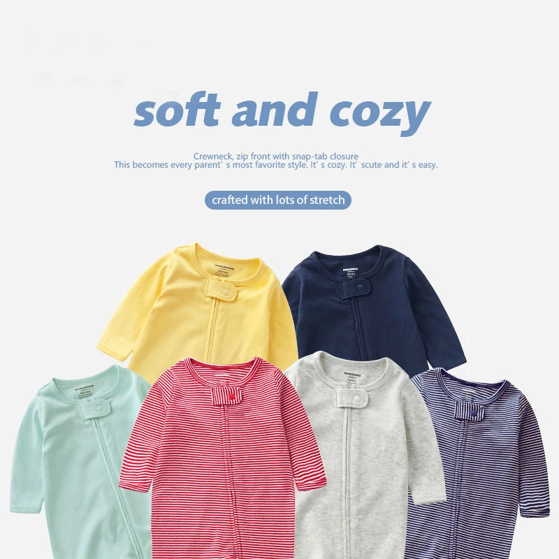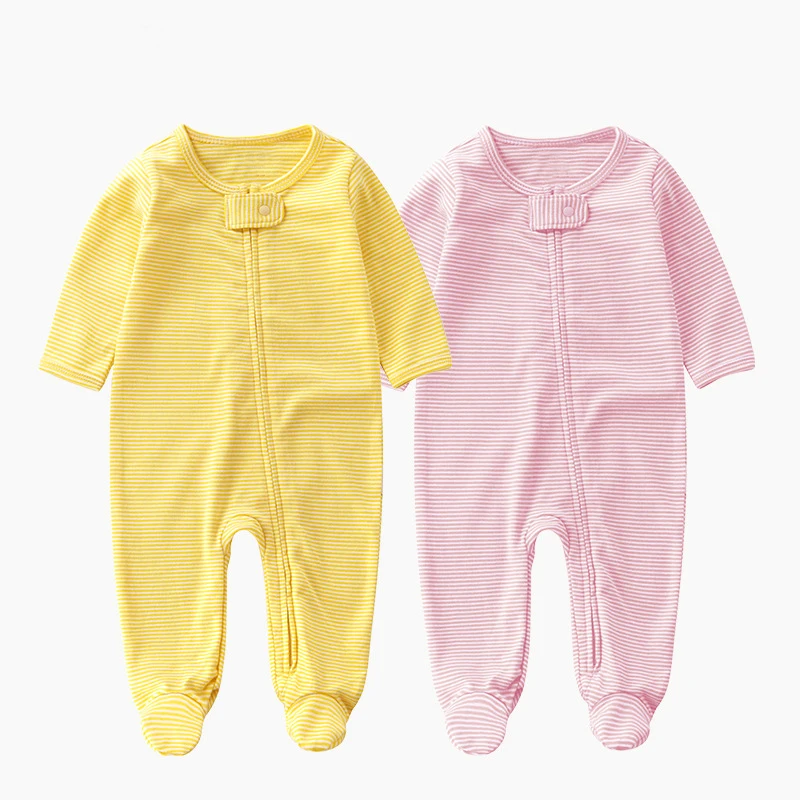 OEM Baby Sleeper Pajamas Weight 100% Cotton Stripe Baby Footer Pajama Custom Zip Up Baby Pajamas