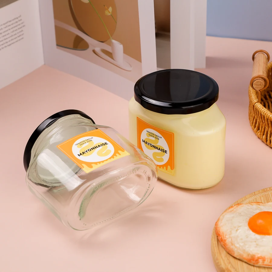12oz Empty Food Canning Glass Packaging 12 Ounce 360 ml Peanut Butter Glass Jar Special Shape with twist off lids