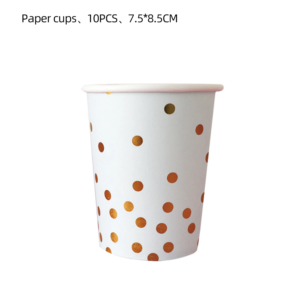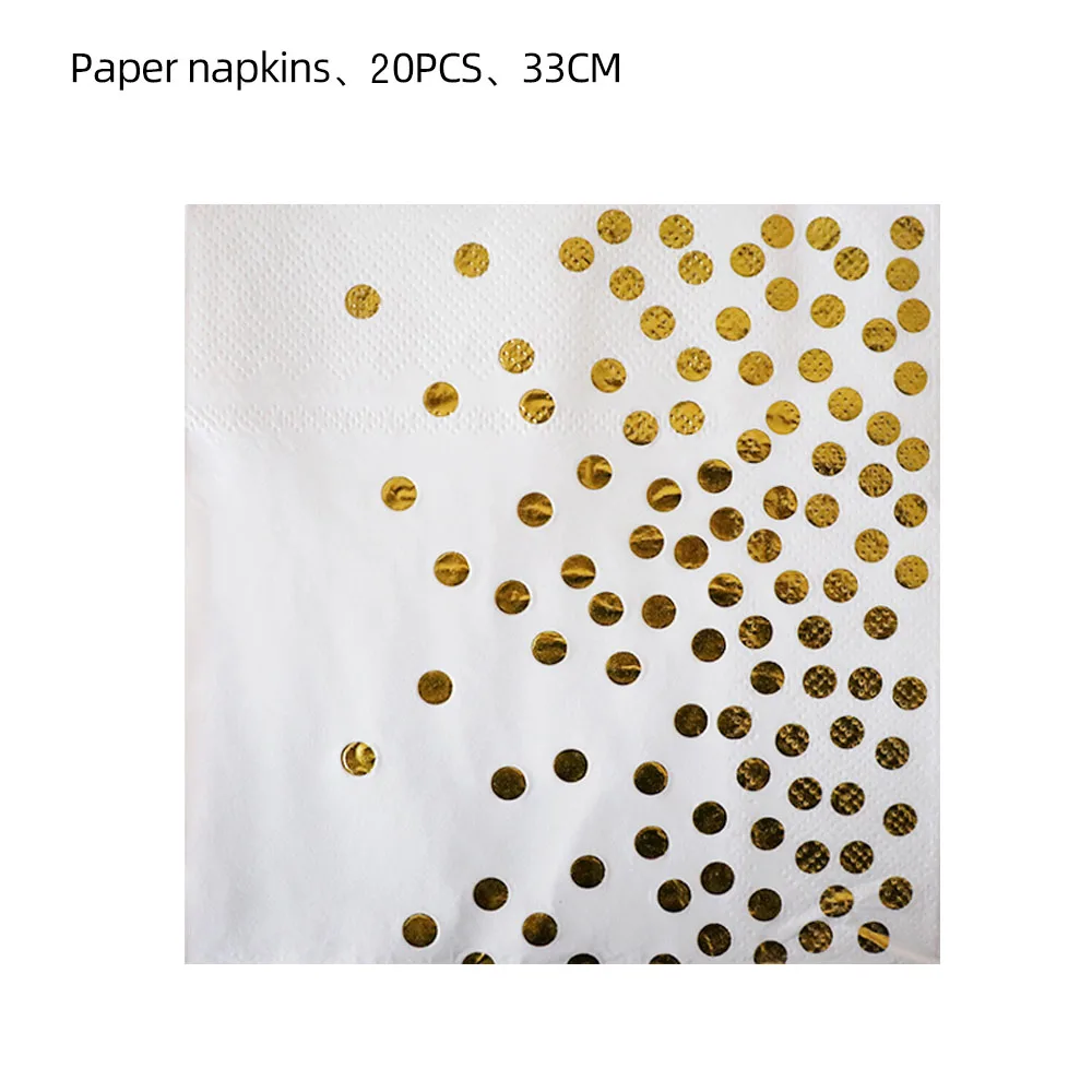White Gold Dot Stamping Party Tableware Set Disposable Birthday Event Supplies Gold Dot Stamping Plates Customized