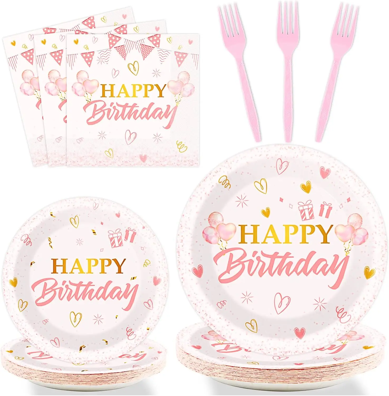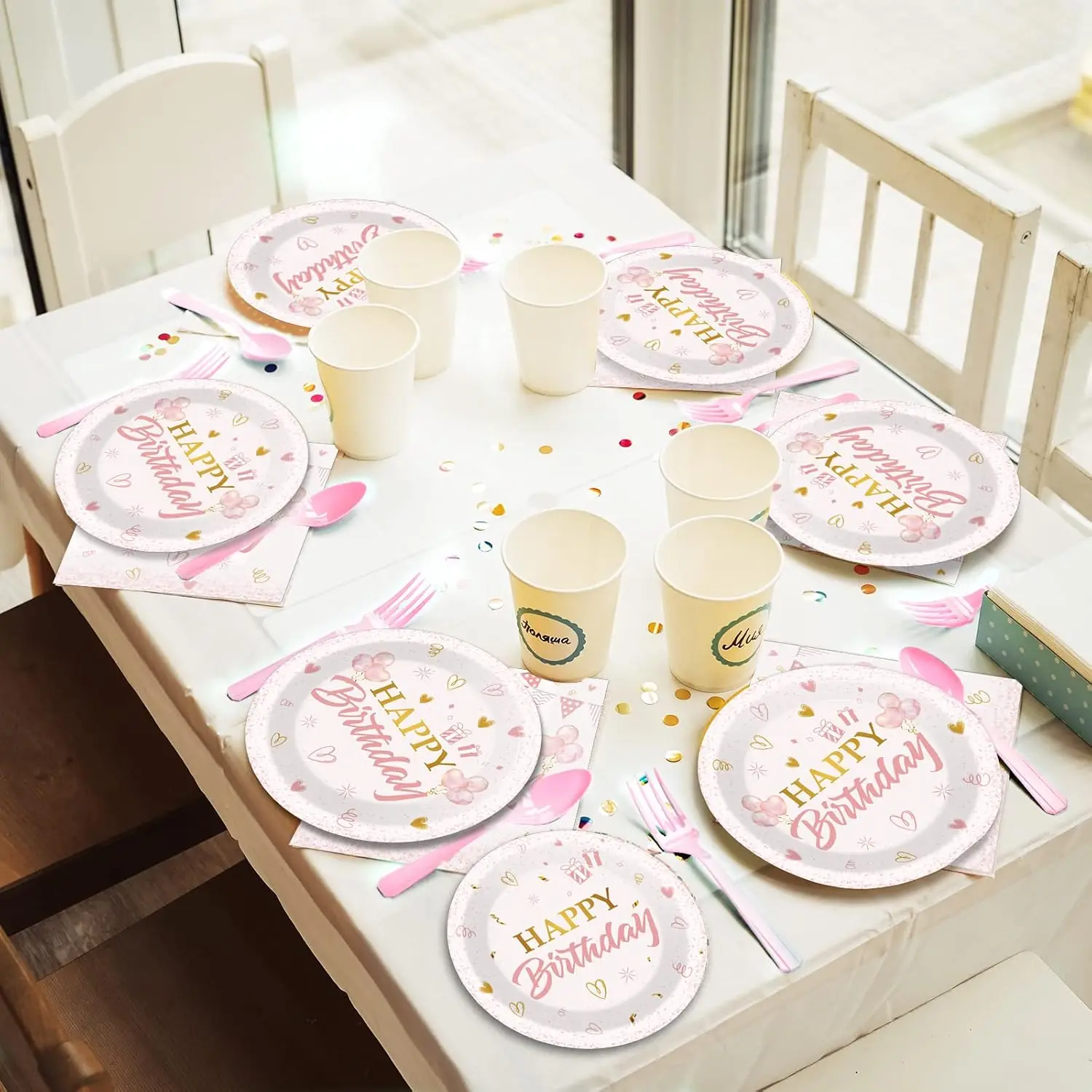 Pink Birthday Tableware Set Birthday Table Decorations Girls Favor Event Disposable Tableware Supplies Customized
