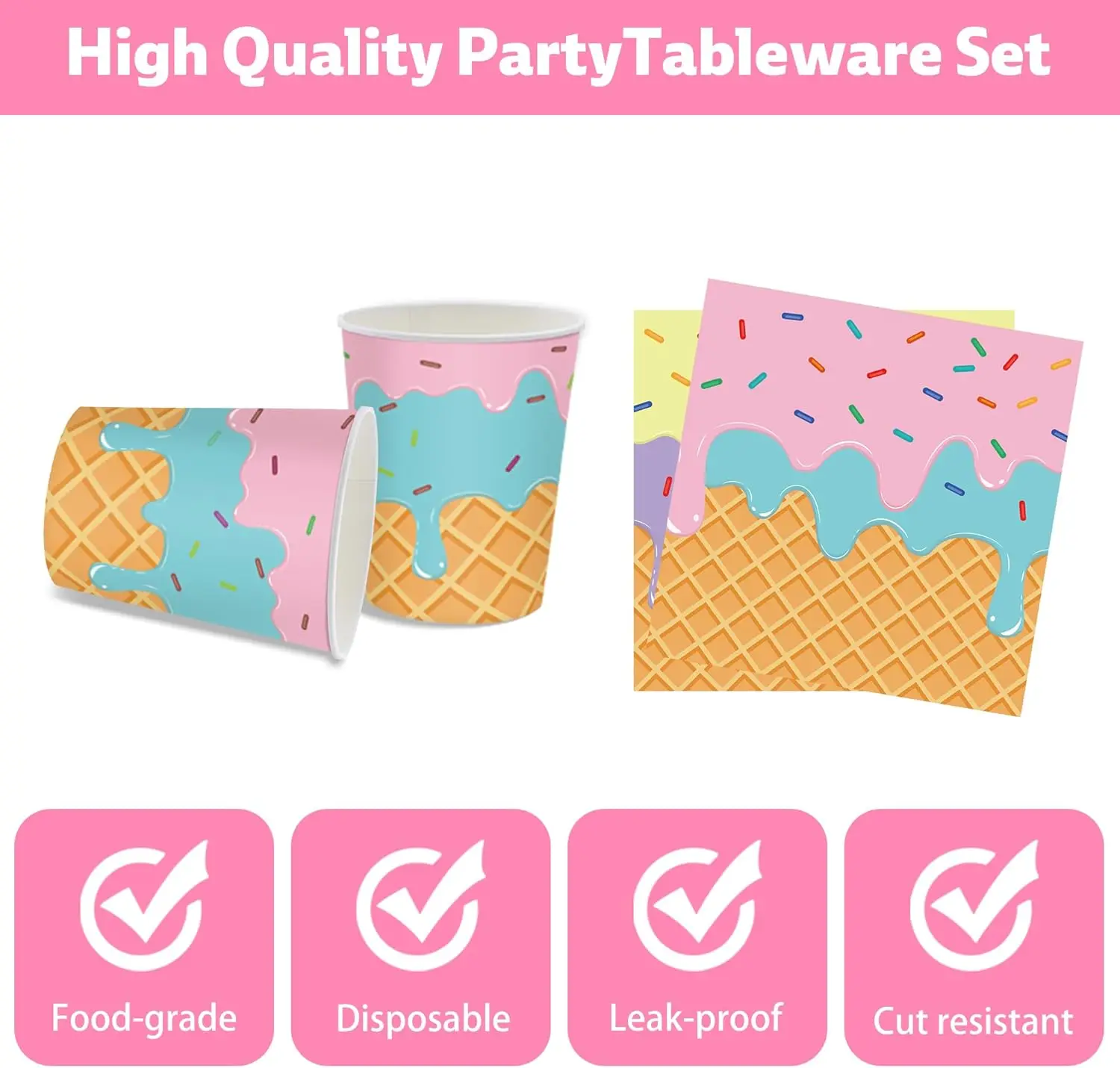 Ice Cream Party Decorations Ice Cream Theme Birthday Event Supplies Disposable Tableware Set Customized