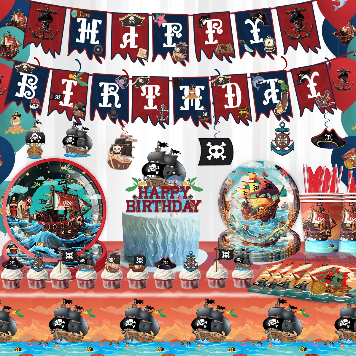 Birthday Party Tableware Set Pirate Disposable Event Supplies Baby Shower Pirates Party Decorations