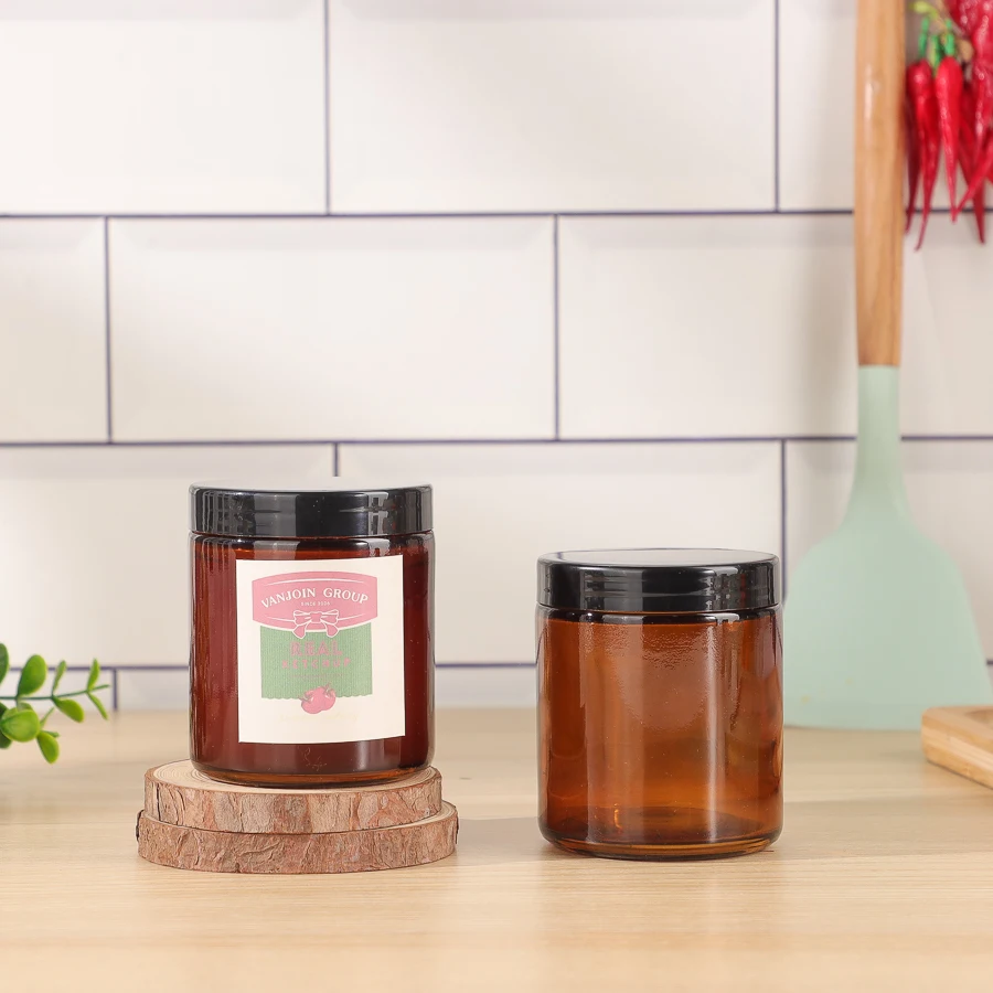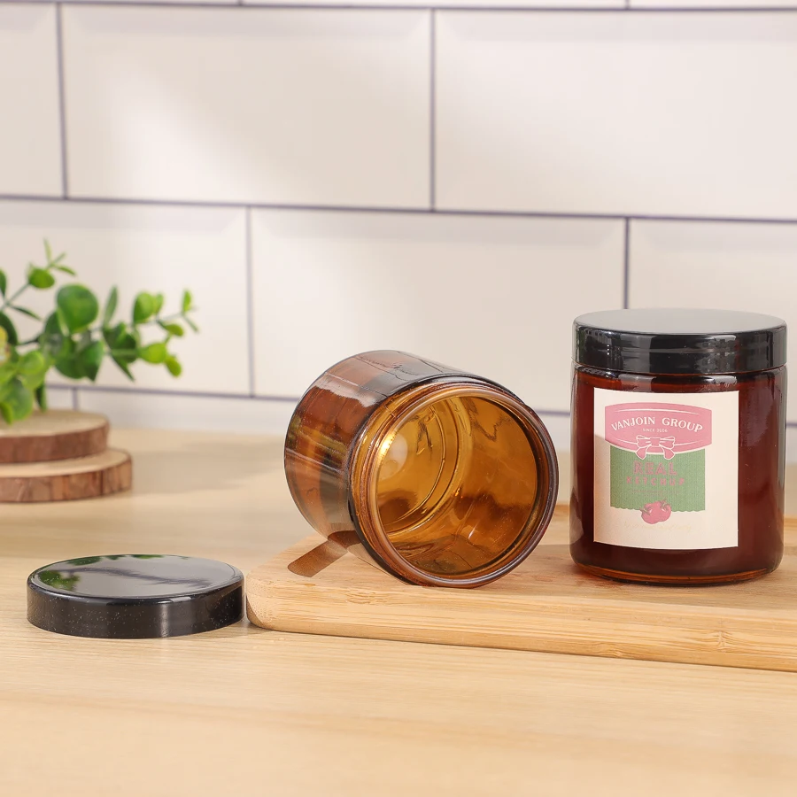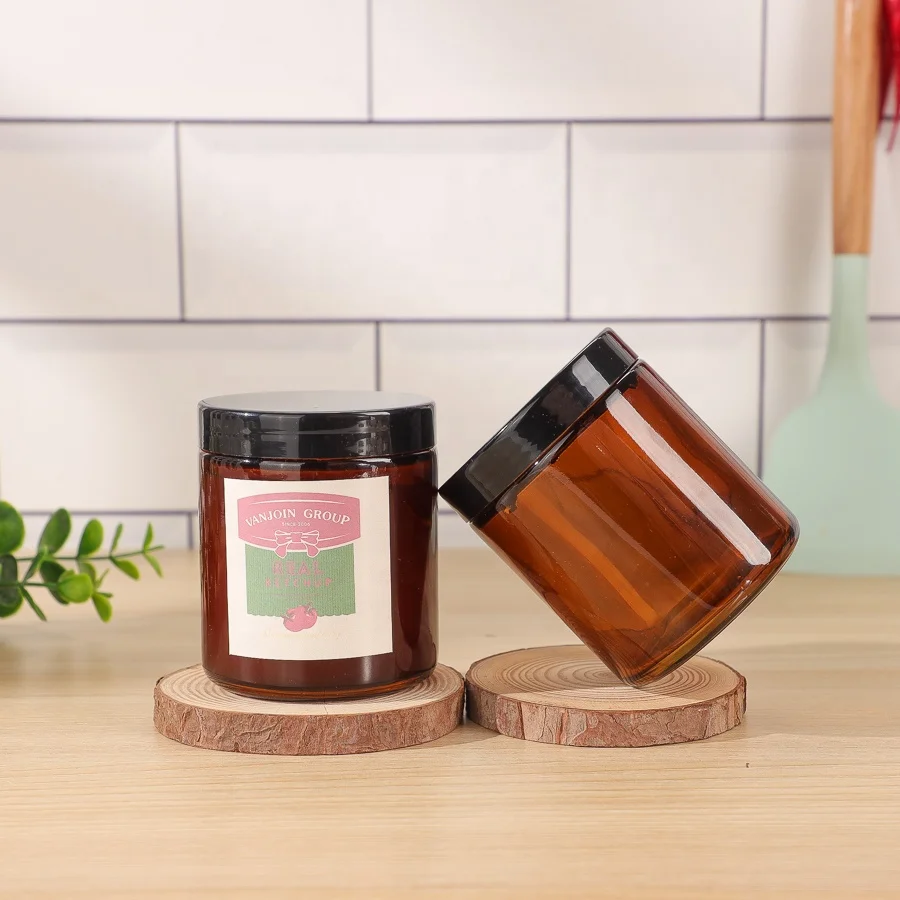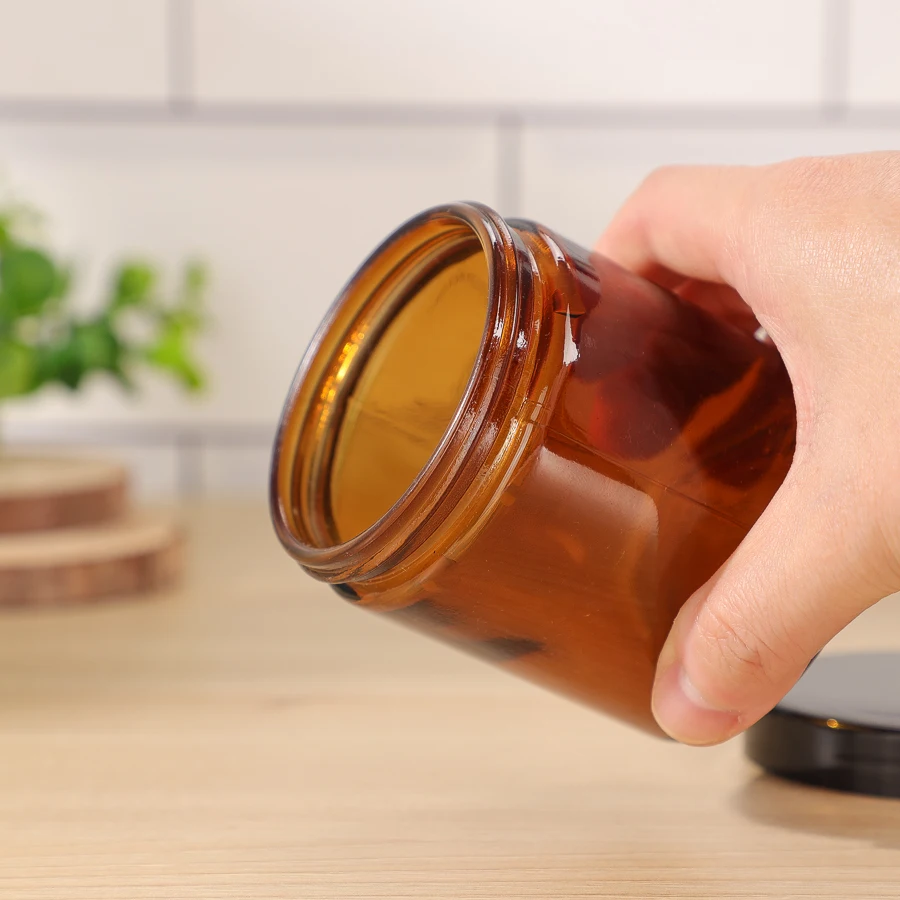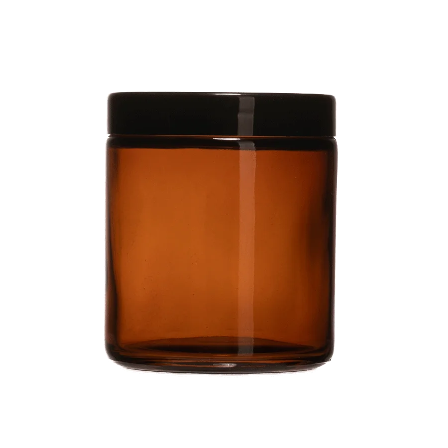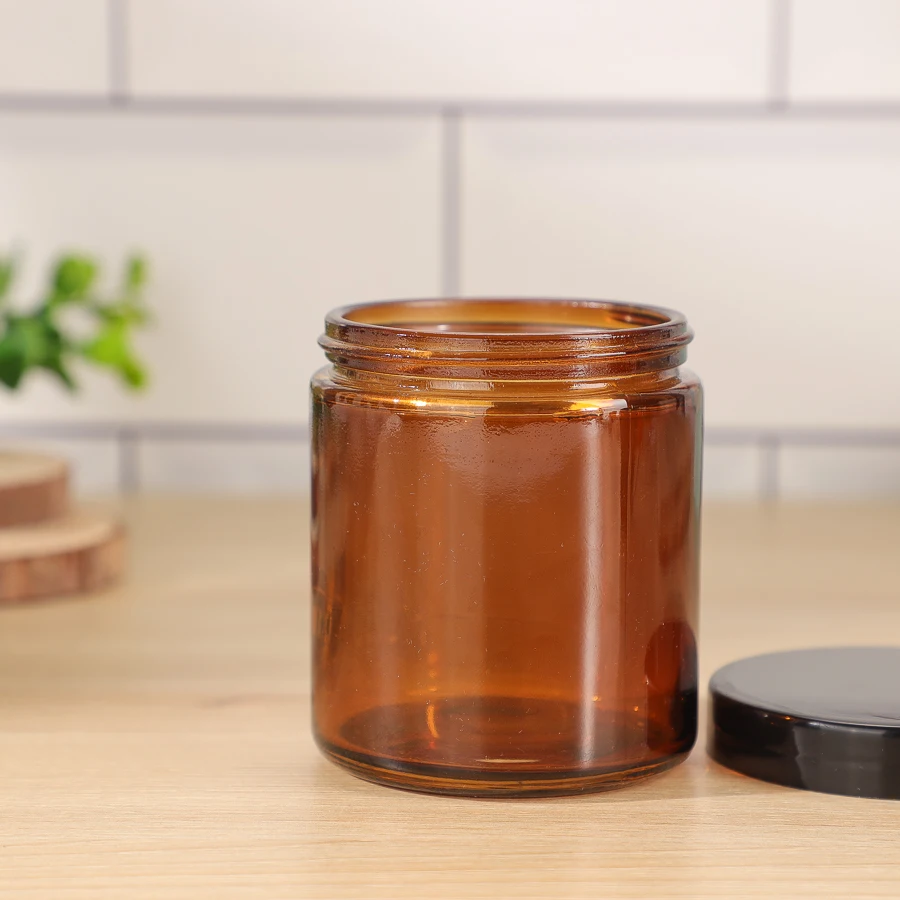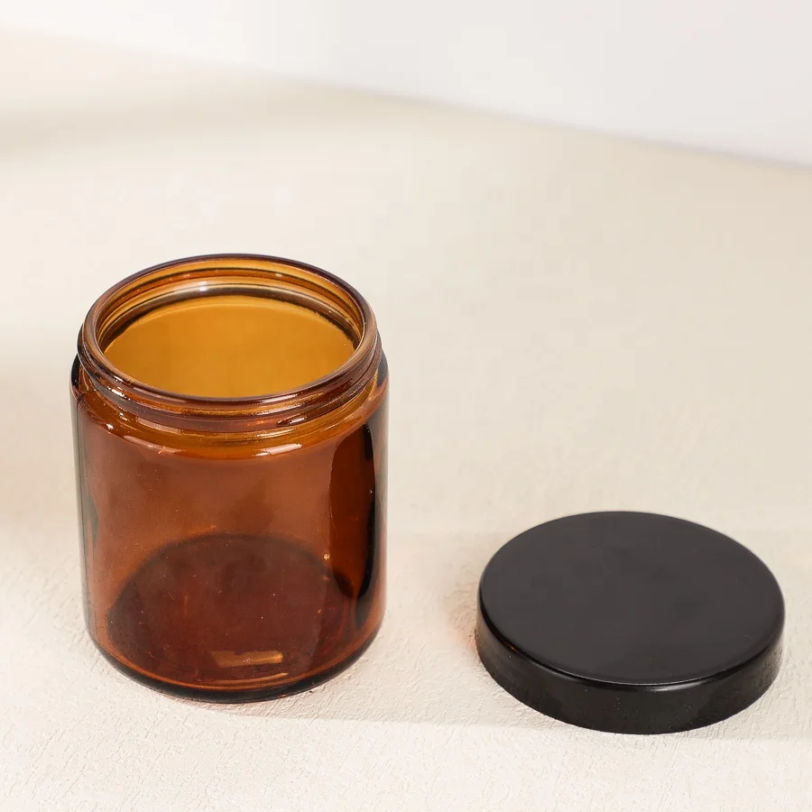 Capacity | 6oz 180ml Amber Luxury Empty Round Straight Sided Glass Candle Jar With Black Lids |