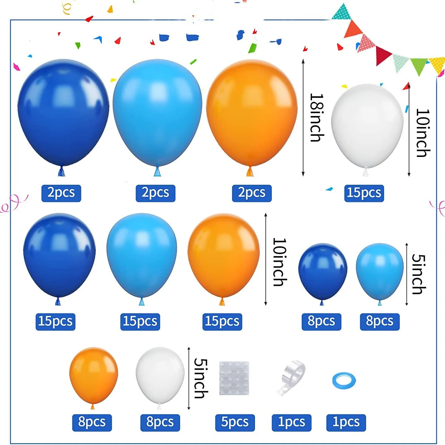 Blue Orange Balloon Arched Set White Party Balloon Birthday Decoration Wedding Baby Shower Engagement Graduation