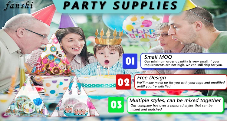 Yiwu Kidsparty Daily Necessities Co., Ltd. is a comprehensive manufacturer specialized in producing and selling party supplies including tablecloths, gift bags, pennants, paper towels, plates, cups, candy boxes, popcorn boxes, horns, blowouts, paper and flexible straws, invitations , backdrops, shoulder straps, piñatas, cake falgs, cake stands, water bottle stickers, etc. Small MOQ and Customizied Products is our absolute advantage.