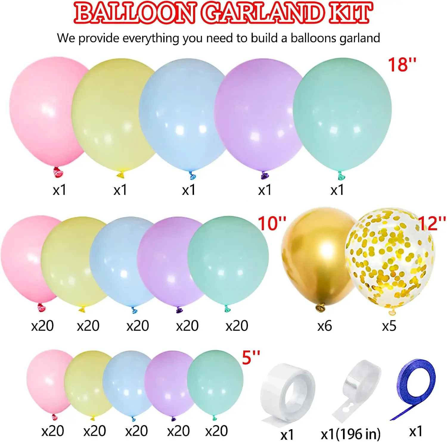 219Pcs Rainbow Balloons Garland Arch Kit Different Balloons Assorted Pastel Party Balloons Arch for Birthday Baby Shower