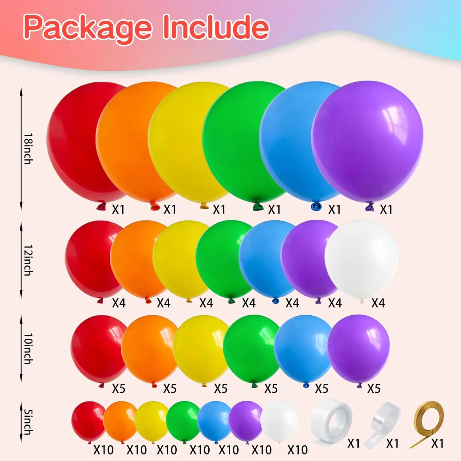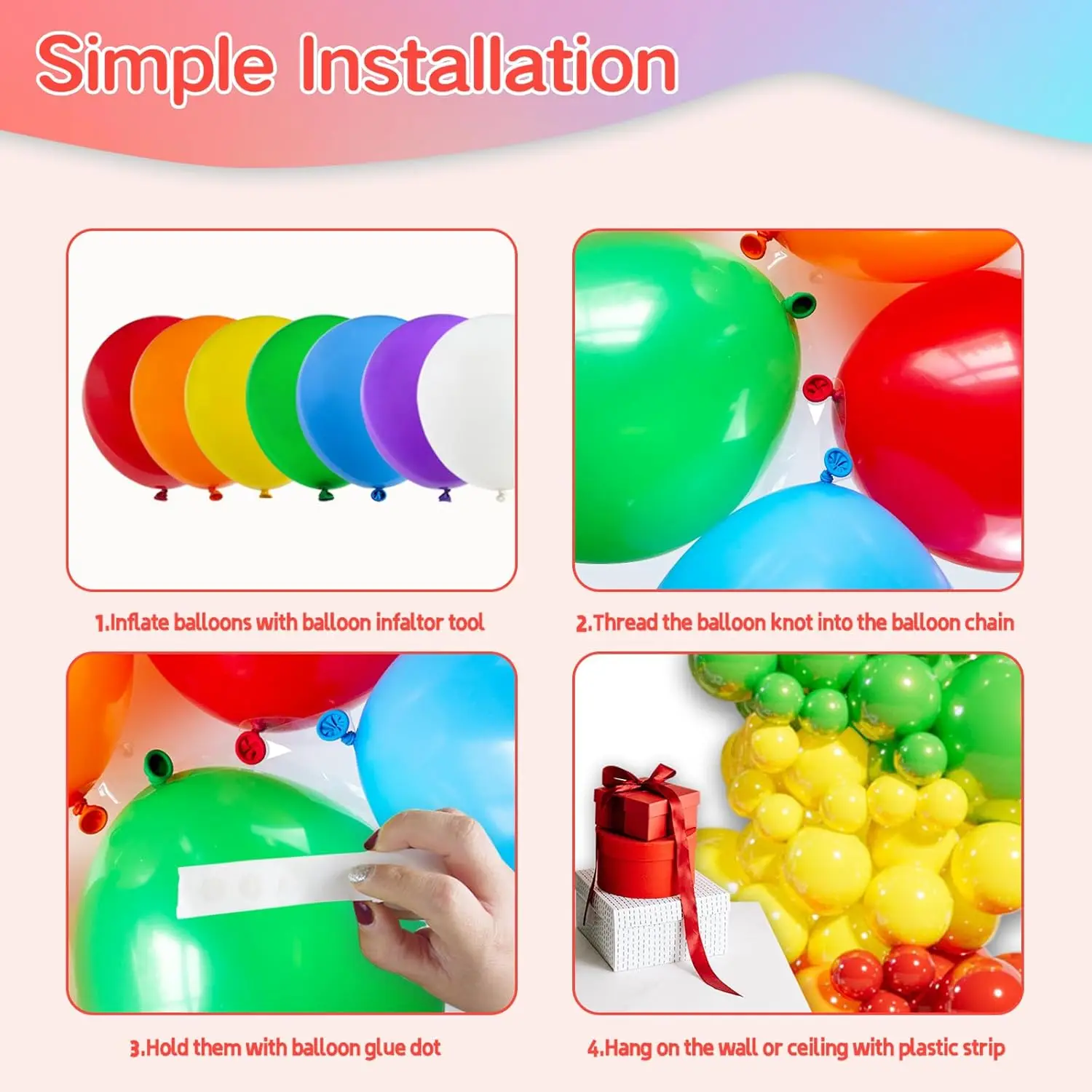 134pcs Rainbow Balloons Garland Arch Kit Assorted Color Balloons Colorful Party Balloons for Birthday Party Decorations