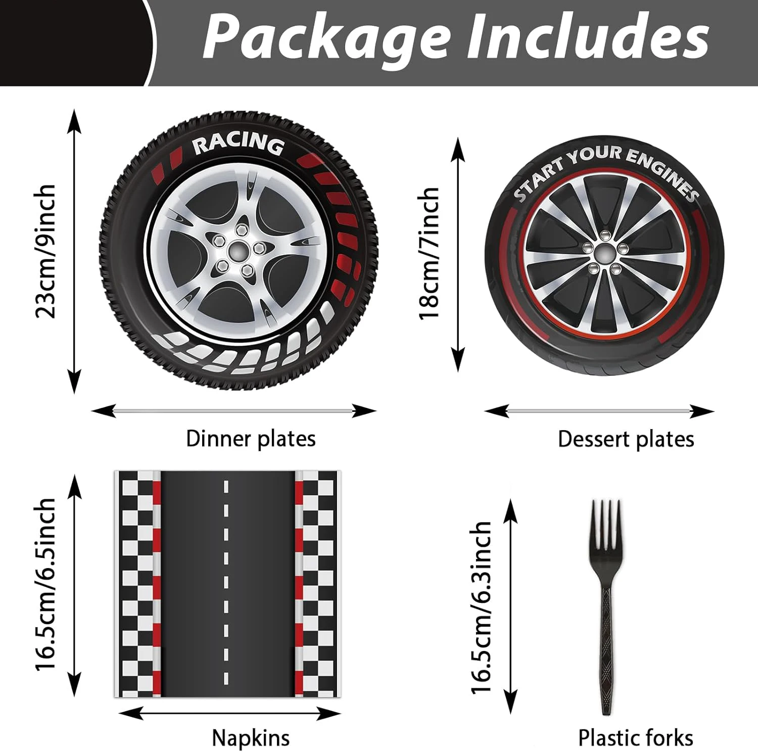Party Set(12Items) | 10pcs 7inch plates, 10pcs 9inch plates, 20pcs napkins, 10pcs cups, 10pcs banners, 10pcs straws, 1pcs tablecloths, 10pcs forks, 10pcs spoons, 10pcs knifes, 1pcs cake flag, 24pcs cupcake flag. | ||||||
