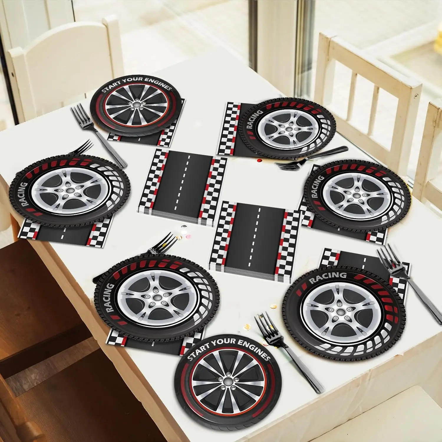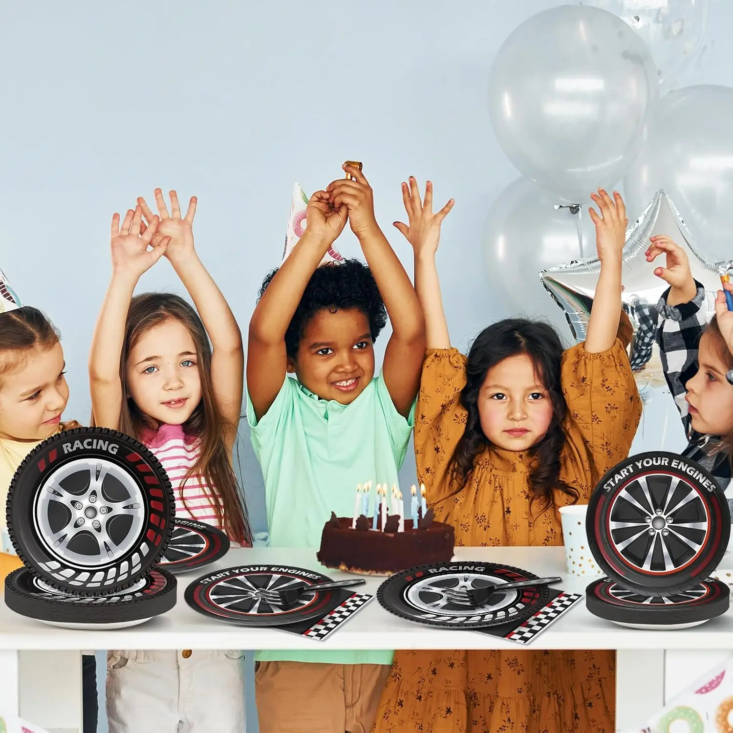 Party Set(8Items) | 10pcs 7inch plates, 10pcs 9inch plates, 20pcs napkins,10pcs cups, 10pcs banners, 1pcs tablecloths, 1pcs cake flag, 24pcs cupcake flag. | ||||||