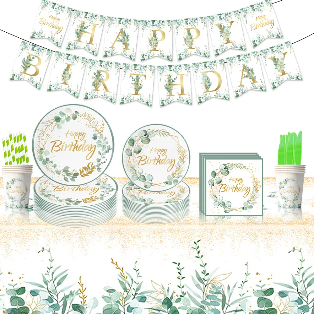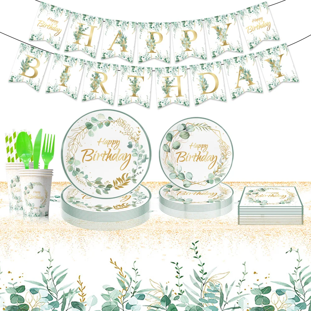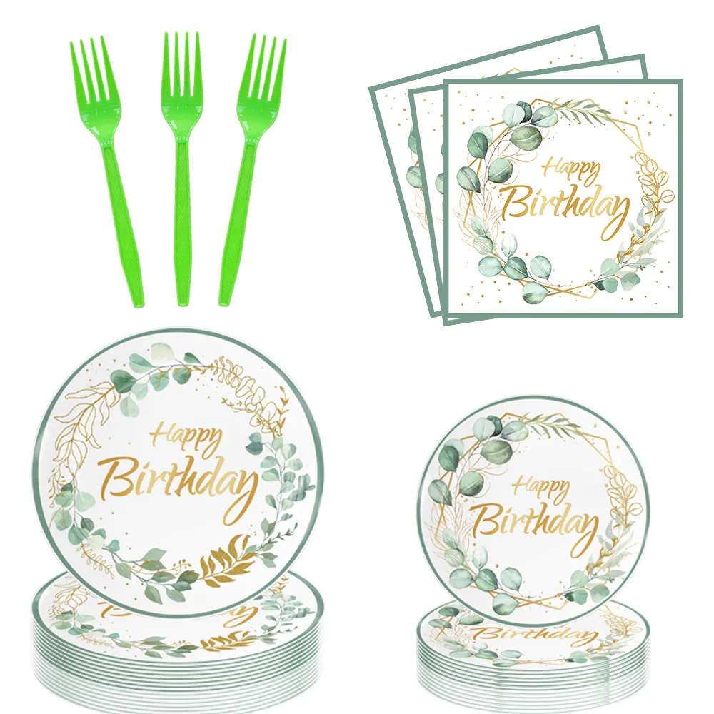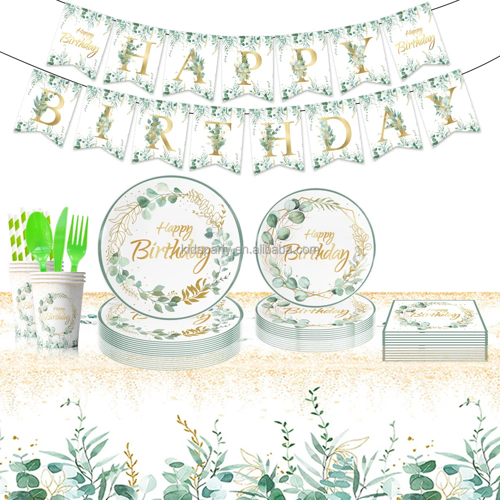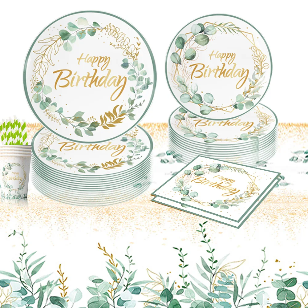 Custom Print Eucalyptus Leaves Birthday Party Dinner Own Paper Plates Disposable Paper Plates 9 Inch And Cups Set For Restaurant