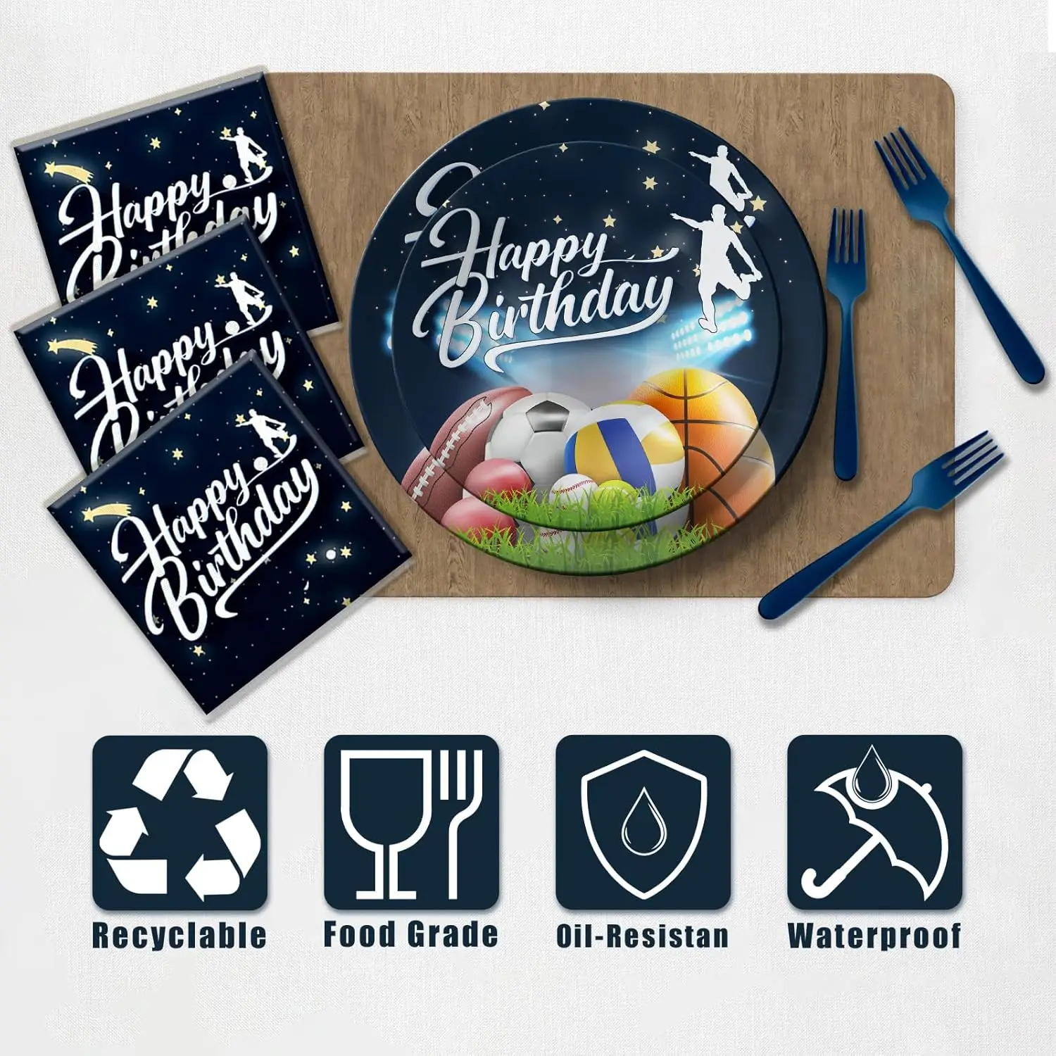 Custom New Sport Football Soccer Ball Theme Party Tableware Set Disposable Paper Plates And Cups Disposable Cutlery