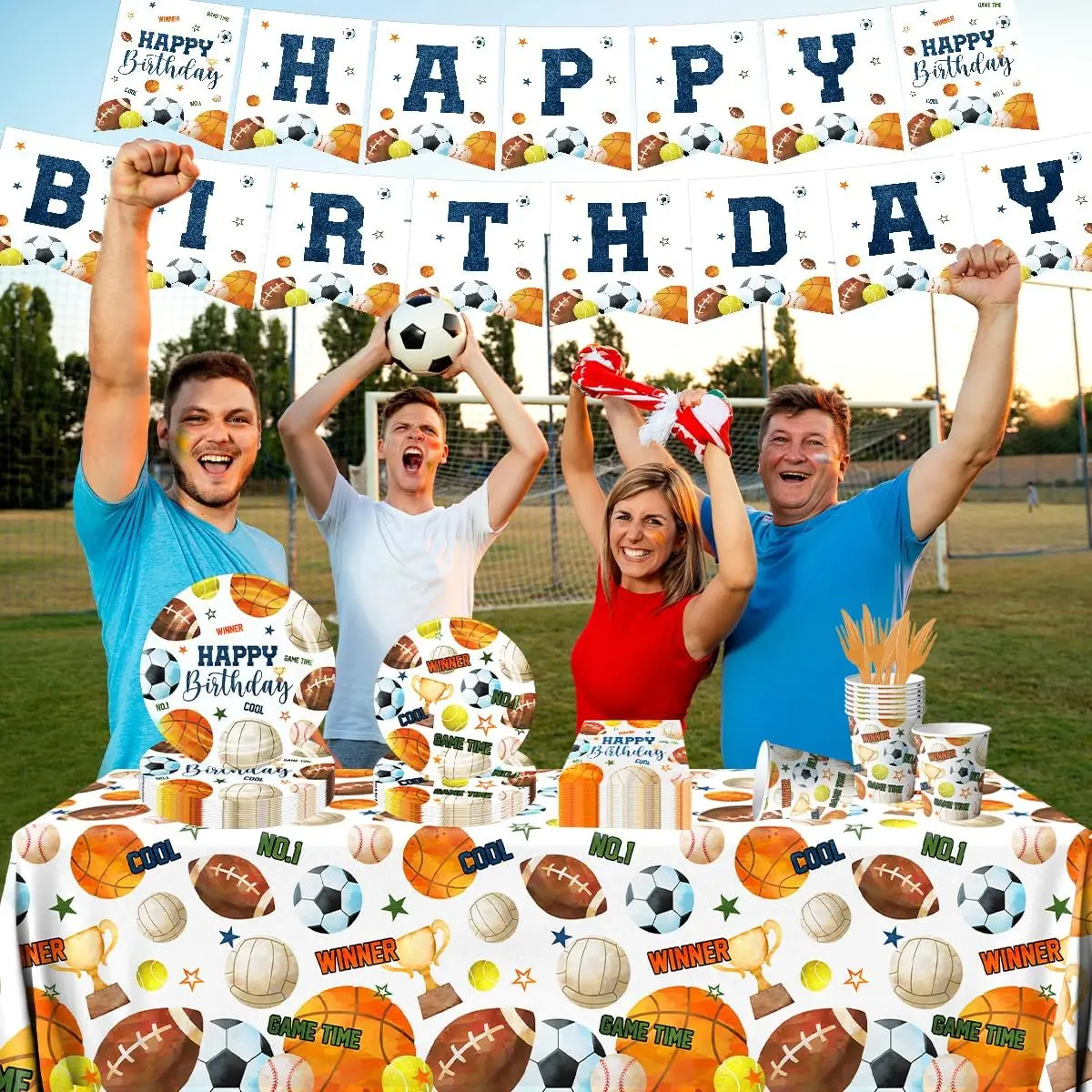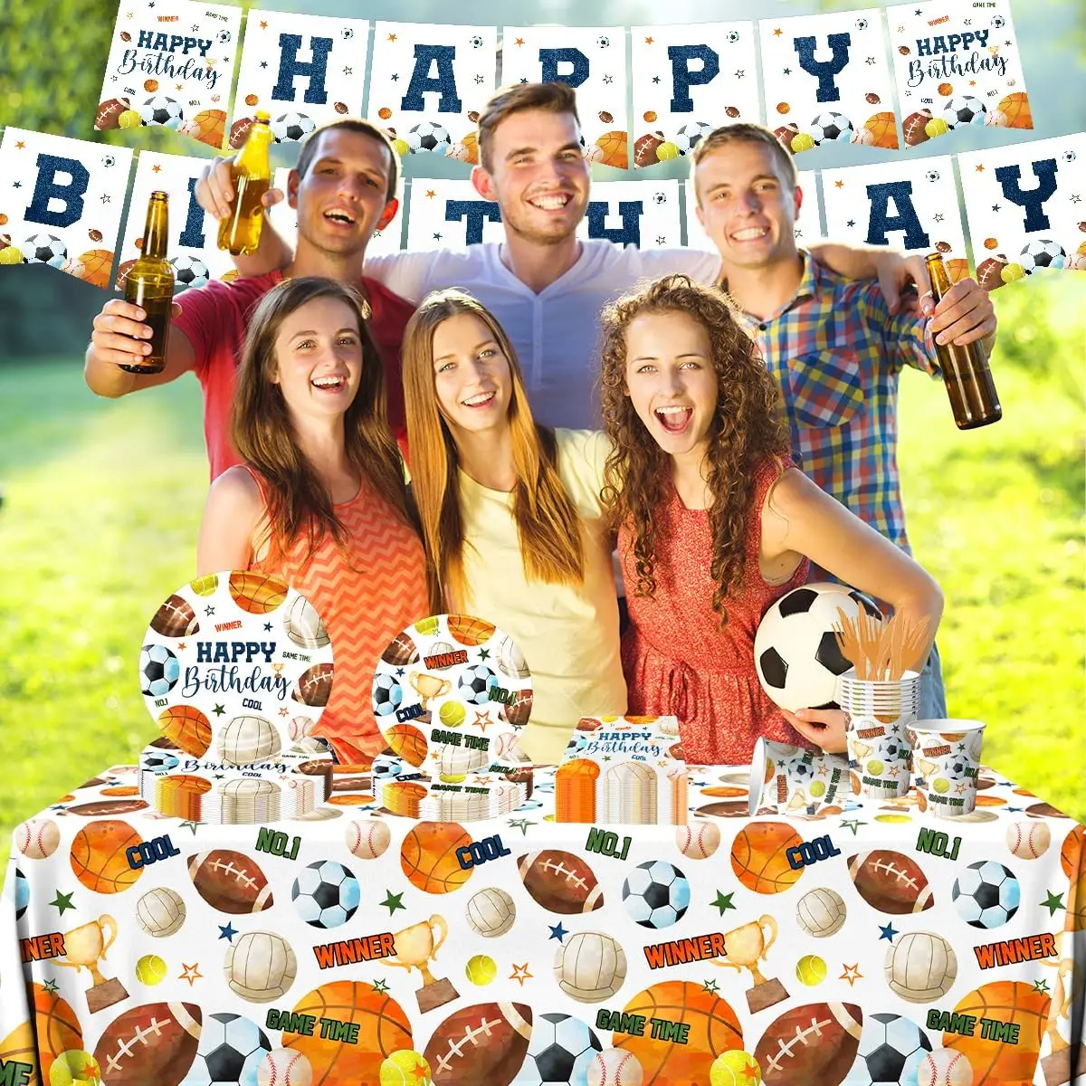 Party Set(5Items) | including: 15pcs letter banners, 18pcs balloons, 24pcs cupcake toppers, 6pcs ceiling decorations, 1pcs cake flag. | ||||||