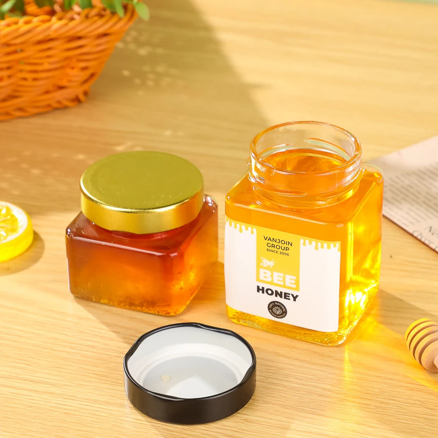 New Comming 106ml Square Ergo Unique Canning Glass Salsa Sauce Pickle Jam Glass Honey Jars With Deep Metal Lug Cap For Sale